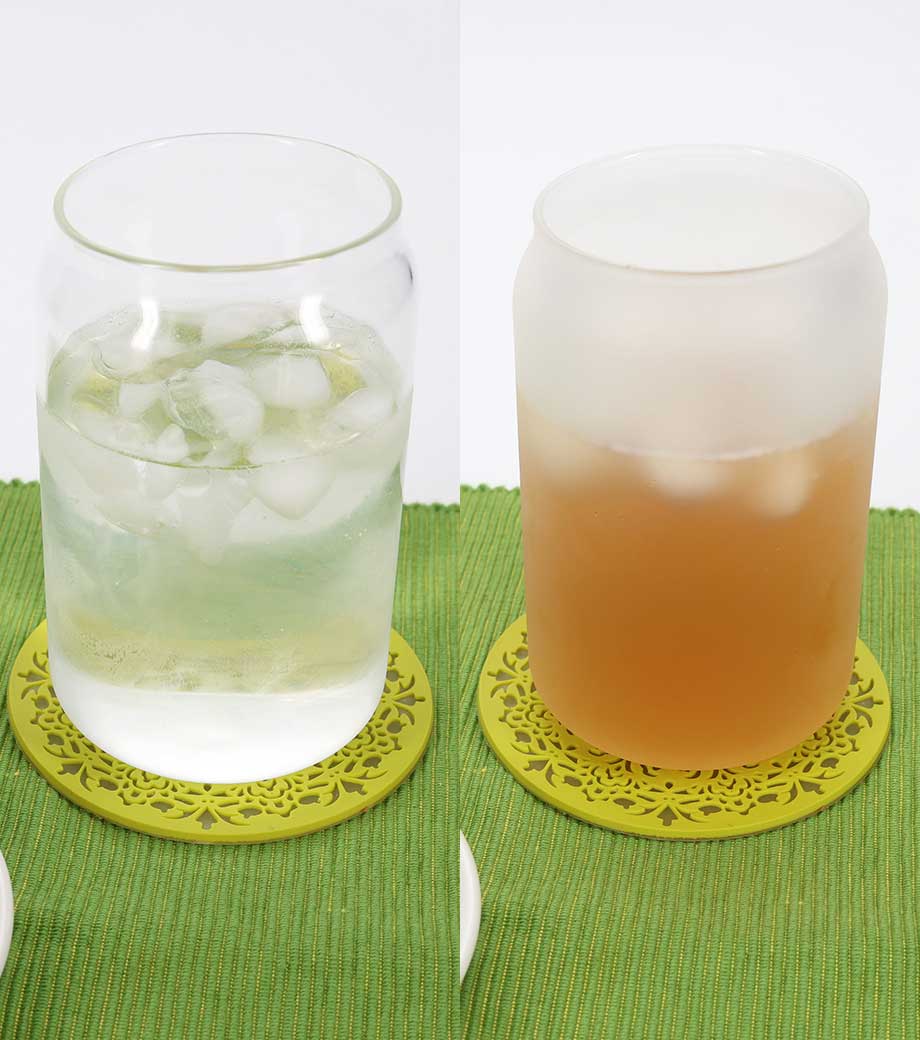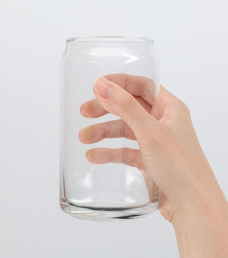 飲料缶をモチーフにした、思わず手に取りたくなるユニークなグラスです。飲み切りやすい約360mlで、日常使いにちょうどいいサイズ感。透明感を活かして飲み物の色合いも楽しめます。花瓶や小物入れなどインテリアグッズとして使えるのも魅力です。