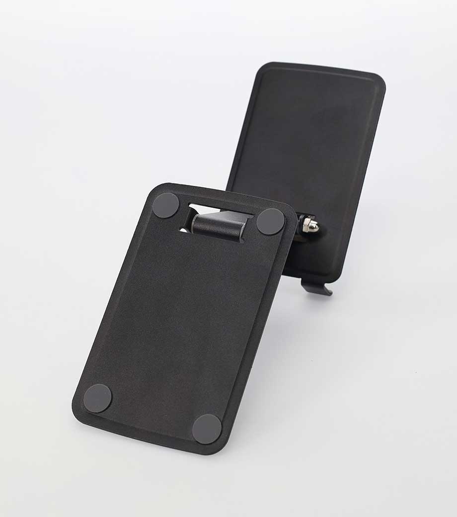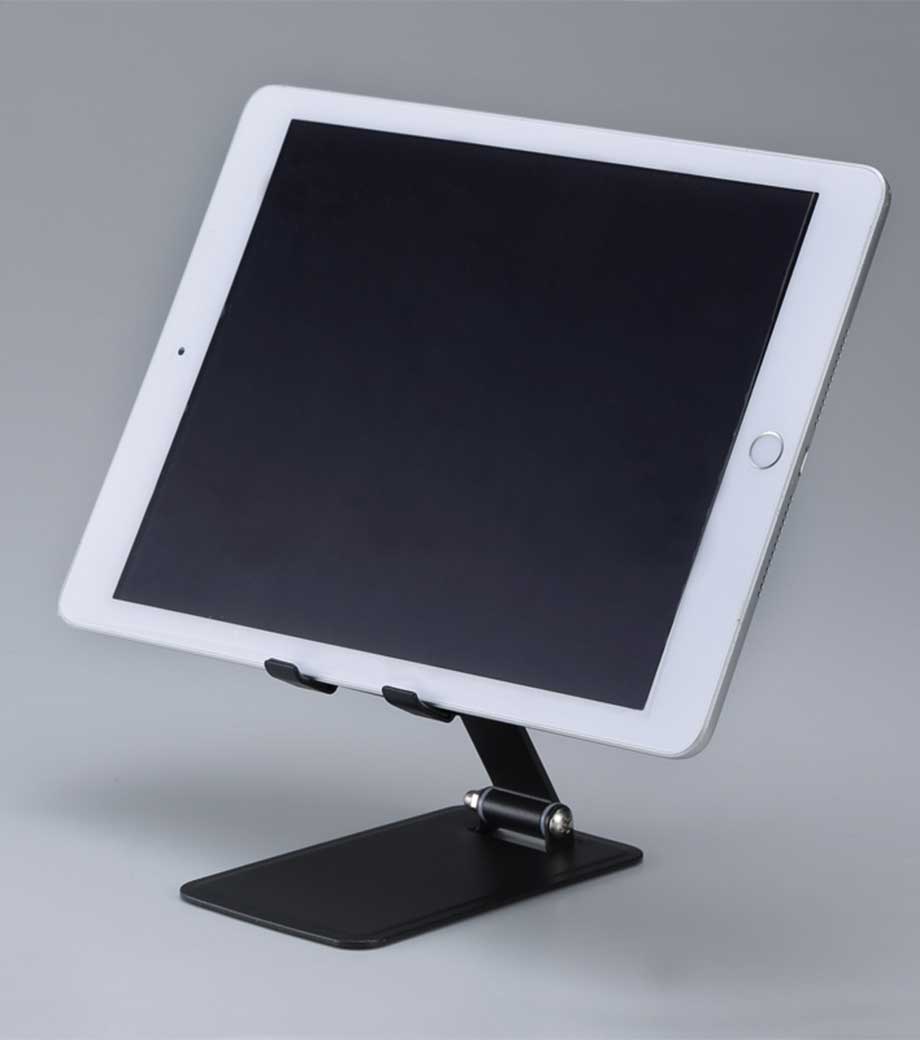 スマホでもタブレットでも使えるスタンド。ずっしり丈夫なスチール製です。土台底面と、デバイスを置く場所にそれぞれラバー製のすべり止め付き。充電しながら使える仕様なのも高ポイント。シンプルながらも機能性の高い商品です。スーツ姿でも使えるデザインで、オンオフ問わず使えます。