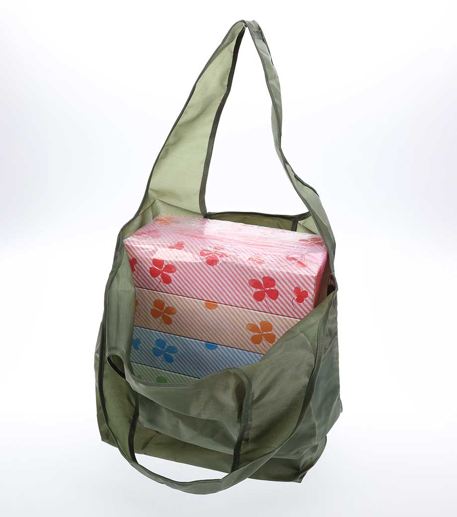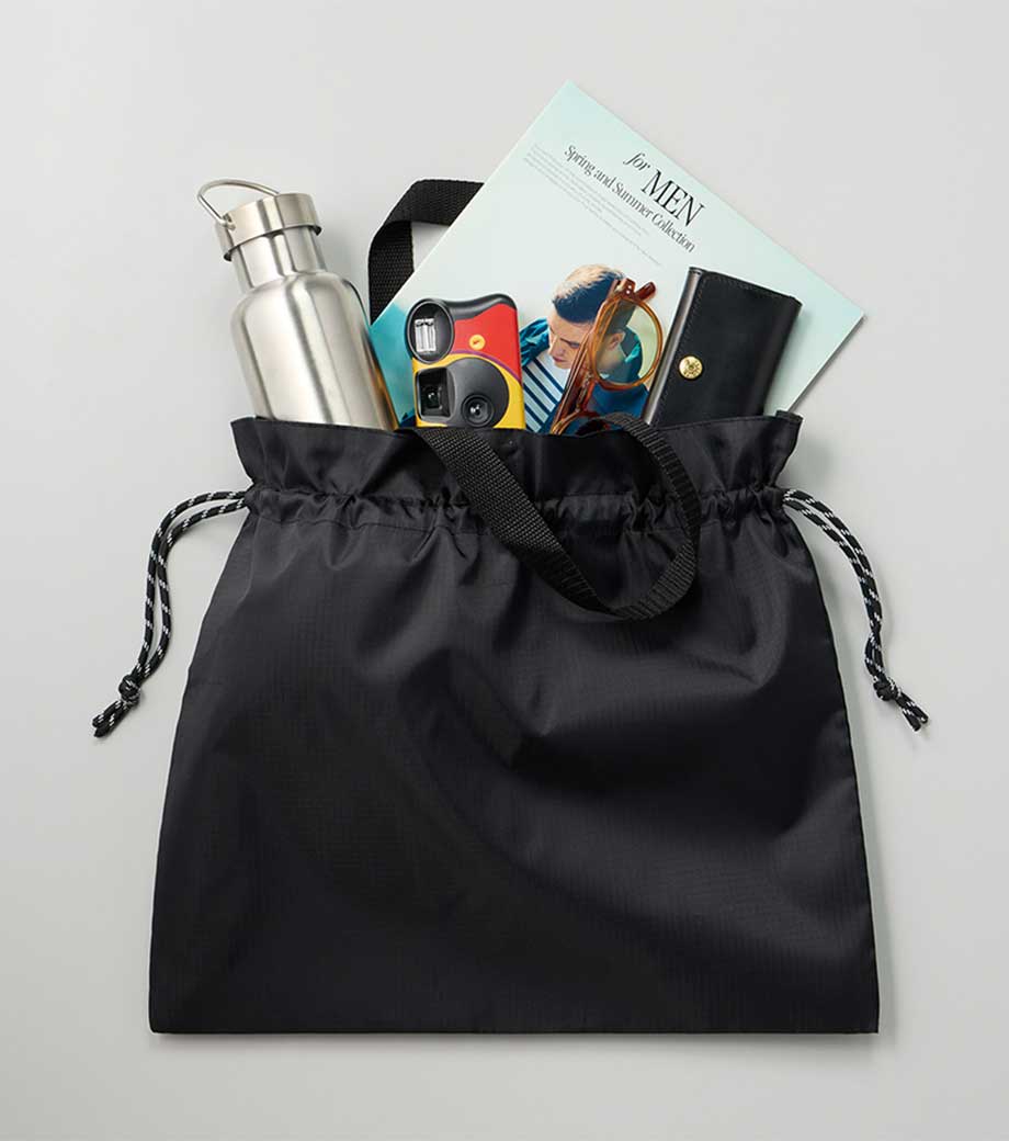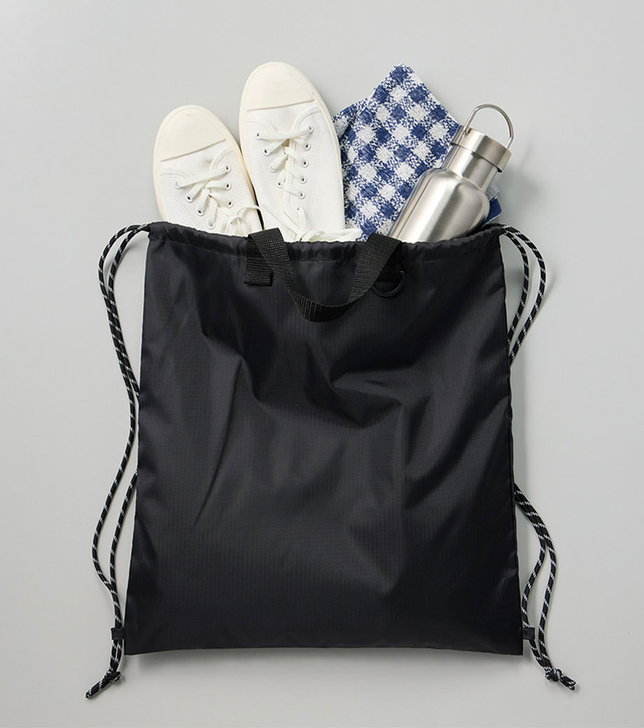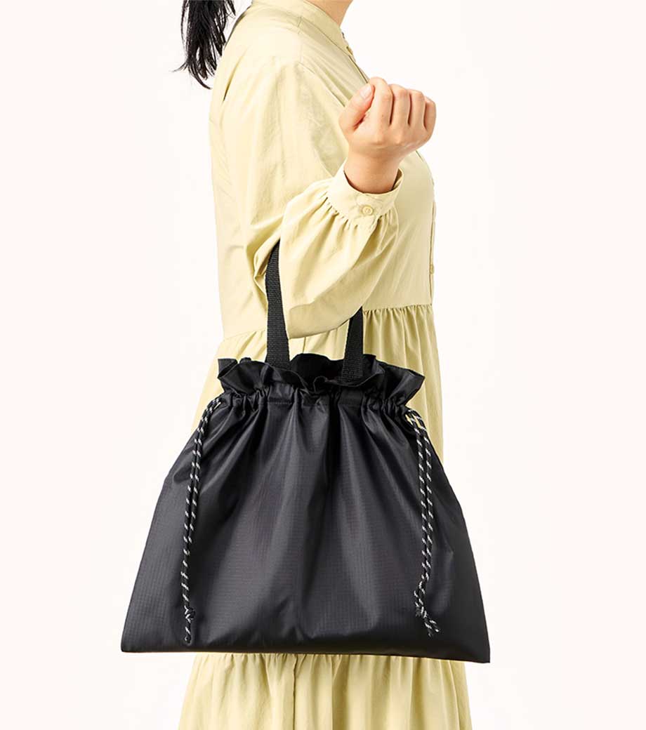 しなやかな光沢とさらっとした手触りが心地よい、ファインライトポリ素材の舟形バッグです。超薄手・超軽量でありながら、お買い物に嬉しい大容量サイズを実現。持ち手にはデザインのアクセントにもなるテープハンドルを採用。持ちやすさにもこだわりました。折りたたんで付属のゴムで留めればコンパクトに携帯できます。