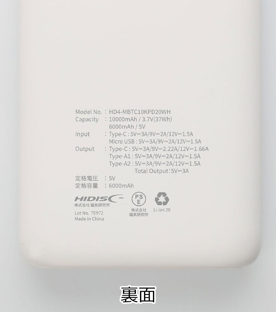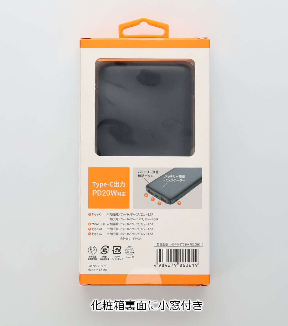 PD20W急速充電対応モバイルバッテリー10000/PSEマーク付