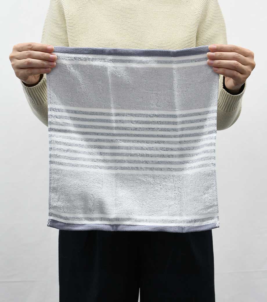 タオル産業の聖地である今治製のウォッシュタオルです。独自の審査基準を満たした今治タオルブランド認定商品で、お手頃価格ながらも上質なアイテム。やわらかな肌触りや吸水性の高さが魅力です。スタイリッシュなボーダー柄は、年代問わず使いやすく重宝されます。ハンカチよりも少し大きいハンドタオルサイズです。