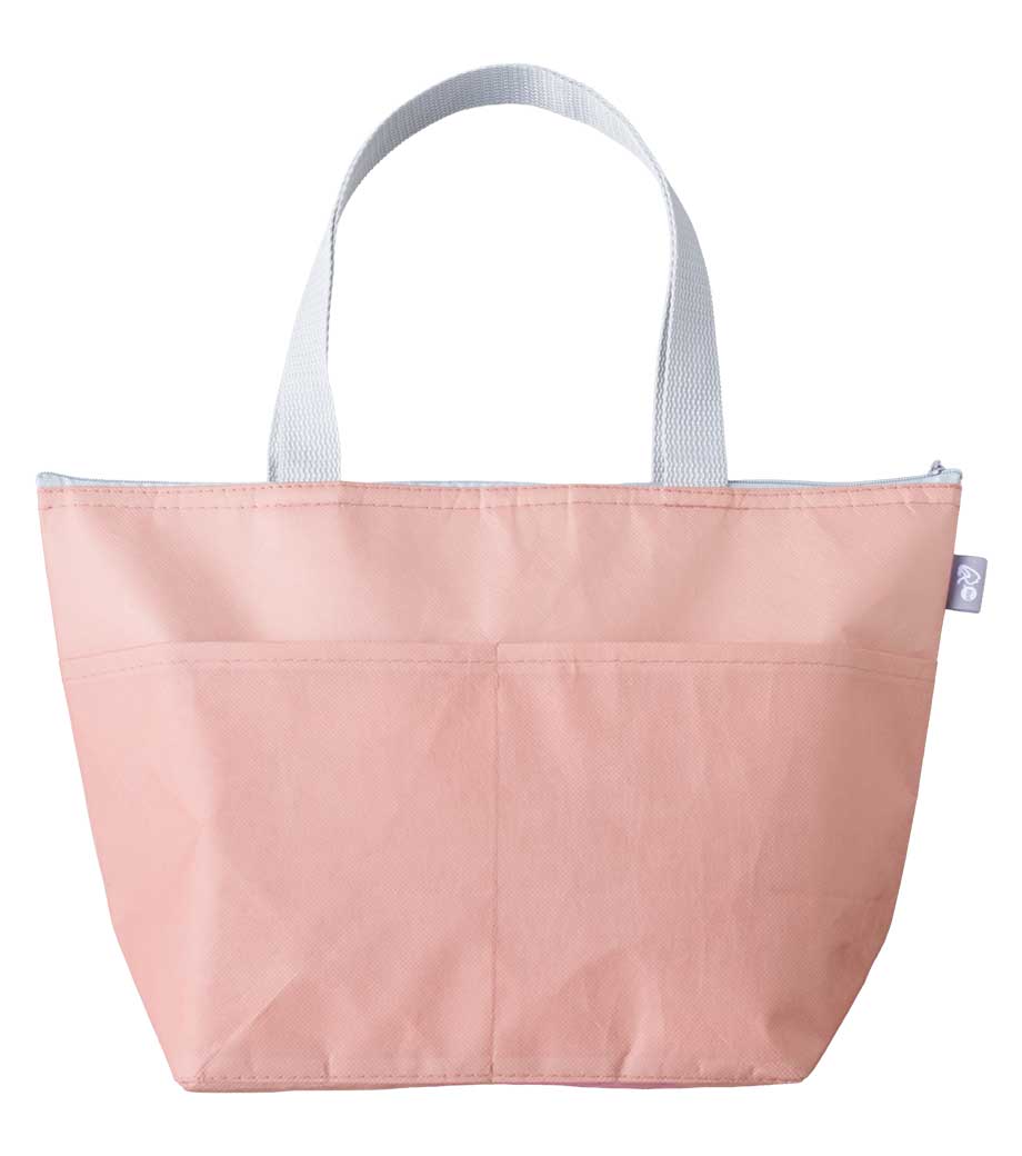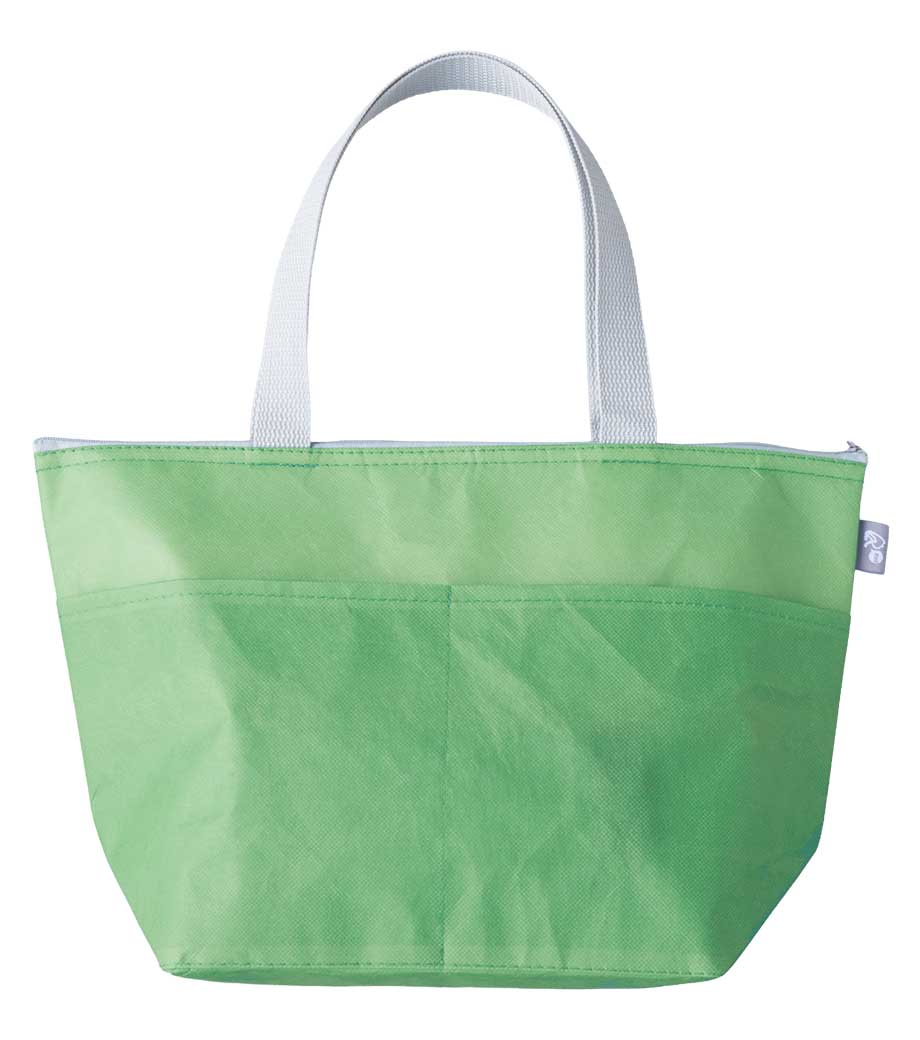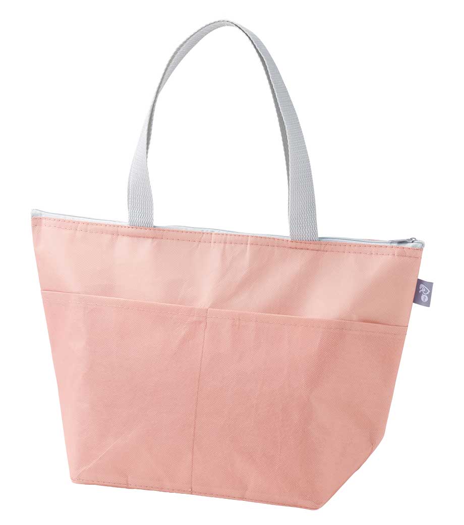 環境にやさしい再生PET素材を使用したマチ付きエコバッグです。内側はアルミ蒸着でしっかり保冷・保温します。500mlペットボトルが6本入るサイズ感。コンビニやスーパーでのちょっとしたお買い物にぴったりです。スマホや財布が入る便利な外側ダブルポケットや、肩掛けできるロングハンドルも嬉しいポイント。