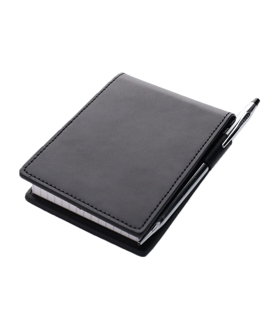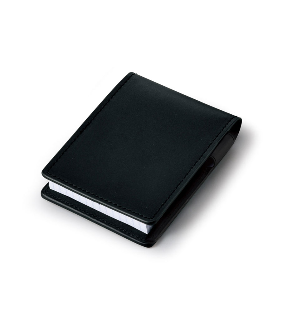 ビジネスシーンで活躍する牛革製のメモカバーです。ポケットやカバンでサッと取り出しやすい片手サイズ。便利なポケットとペンホルダー付きです。メモは書きやすさで定評のあるフランス製のブロックメモ、ロディアをセット。メモの表紙は3色からお選びいただけます。