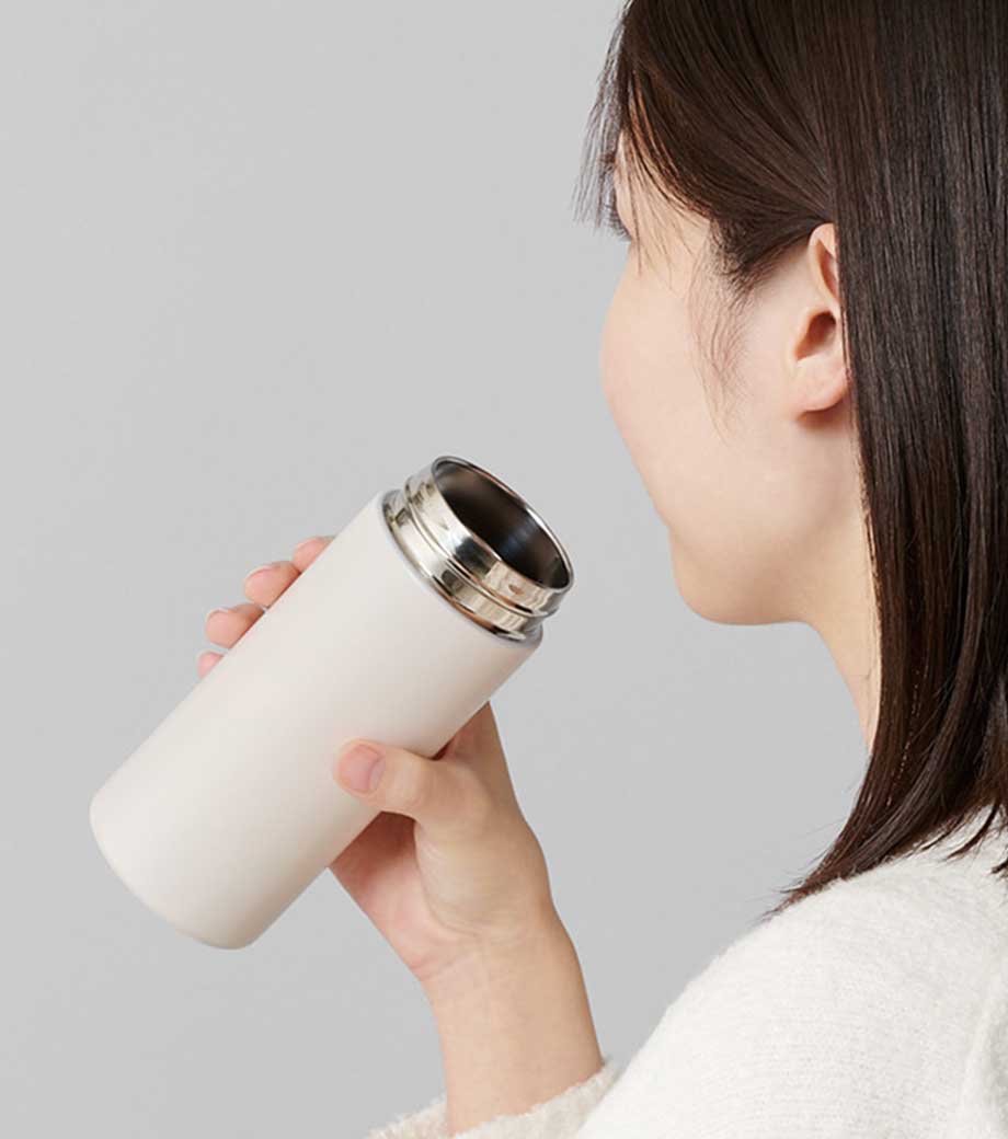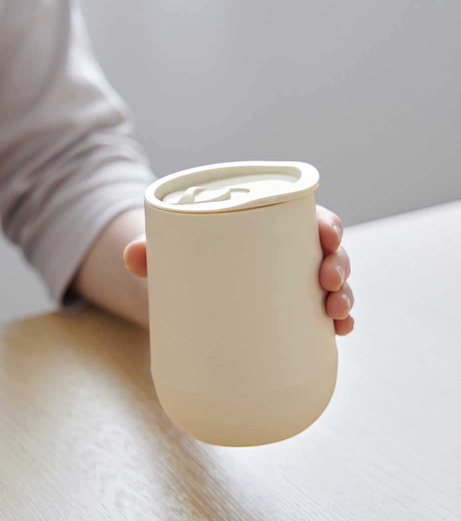飲み終わったら手のひらサイズに畳めるシリコンボトル。飲み物を入れて冷凍すれば、氷のう・保冷剤代わりに使えます。容量はアクティブに動く日にも便利な600mlサイズ。フタパーツを外すと、大きめの氷も入れられます。折りたたみ用バンドは本体一体型で失くす心配がありません。パーツ分解が可能で、お手入れしやすいのが嬉しいポイント。ブルー・グレーの2色を取混ぜでお届けします。
