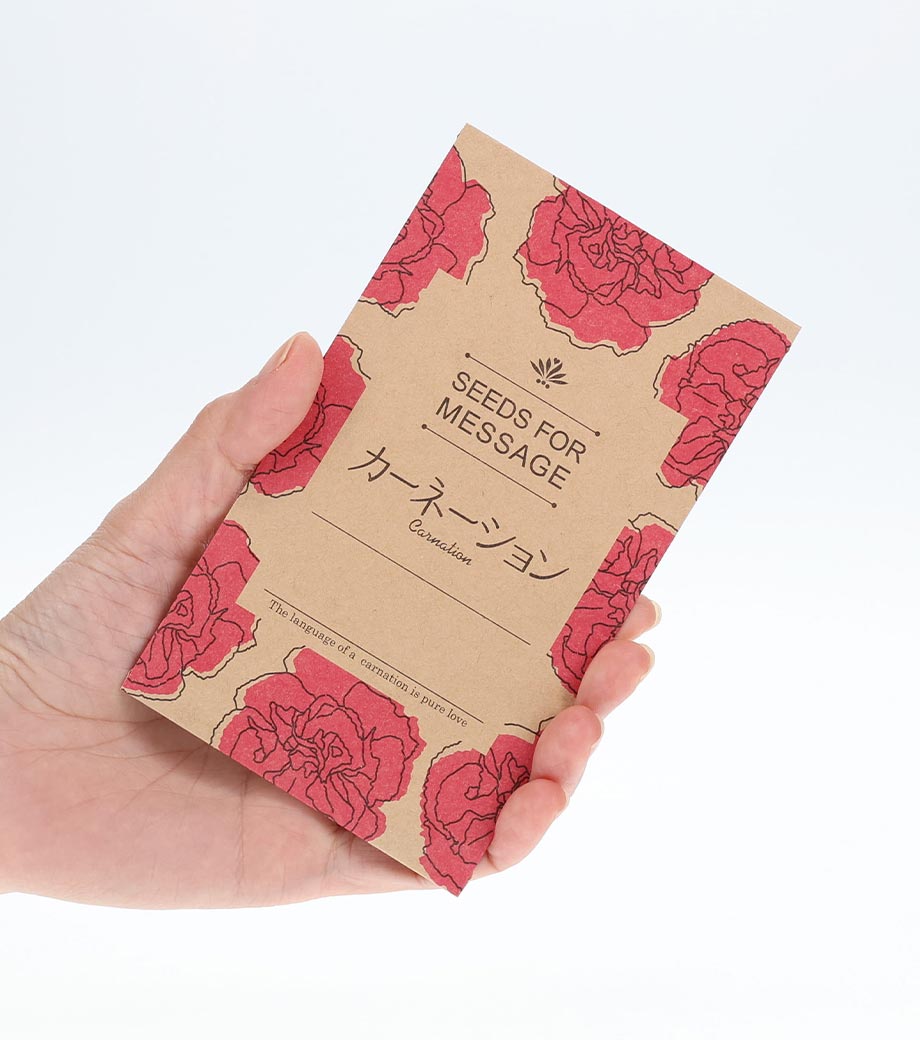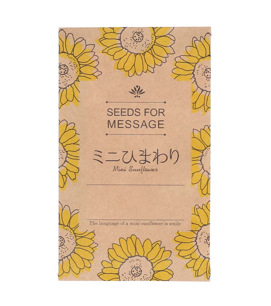 なでしこ、アリッサム、カーネーション、カンパニュラ、ミニひまわりの5種類の種を、温かみのあるクラフト紙のパッケージに収めました。おしゃれなイラストがポイントです。非常に安価でかさばらないため、大量配布や郵送ノベルティにも最適。女性向けイベントの来場特典やキャンペーンの景品として、季節を感じる「育てる喜び」をスマートに手渡せる人気アイテムです。
