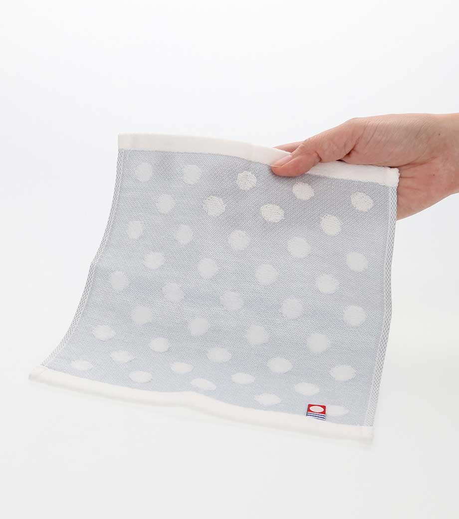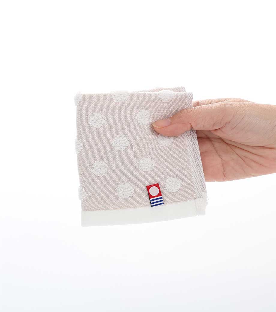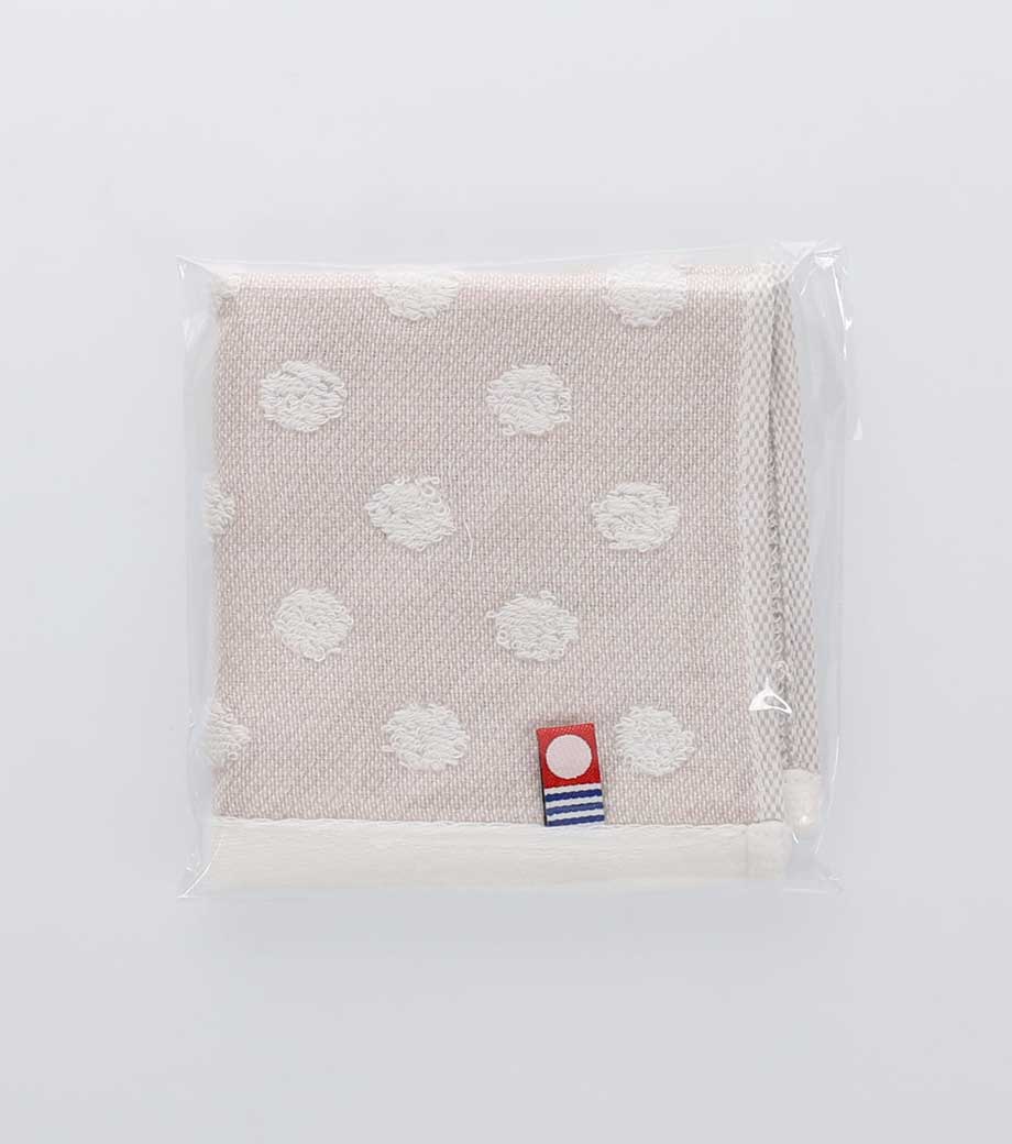 ふんわりとした手触りとドット模様のデザインが、ほっこりするコンパクトなタオルハンカチです。日本のタオルブランドとして信頼と実績のある今治タオル。品質の良さはお墨付きです。ベージュとブルーグレーの2色取混ぜでお届け。来店特典や、イベントでの配布などにおすすです。