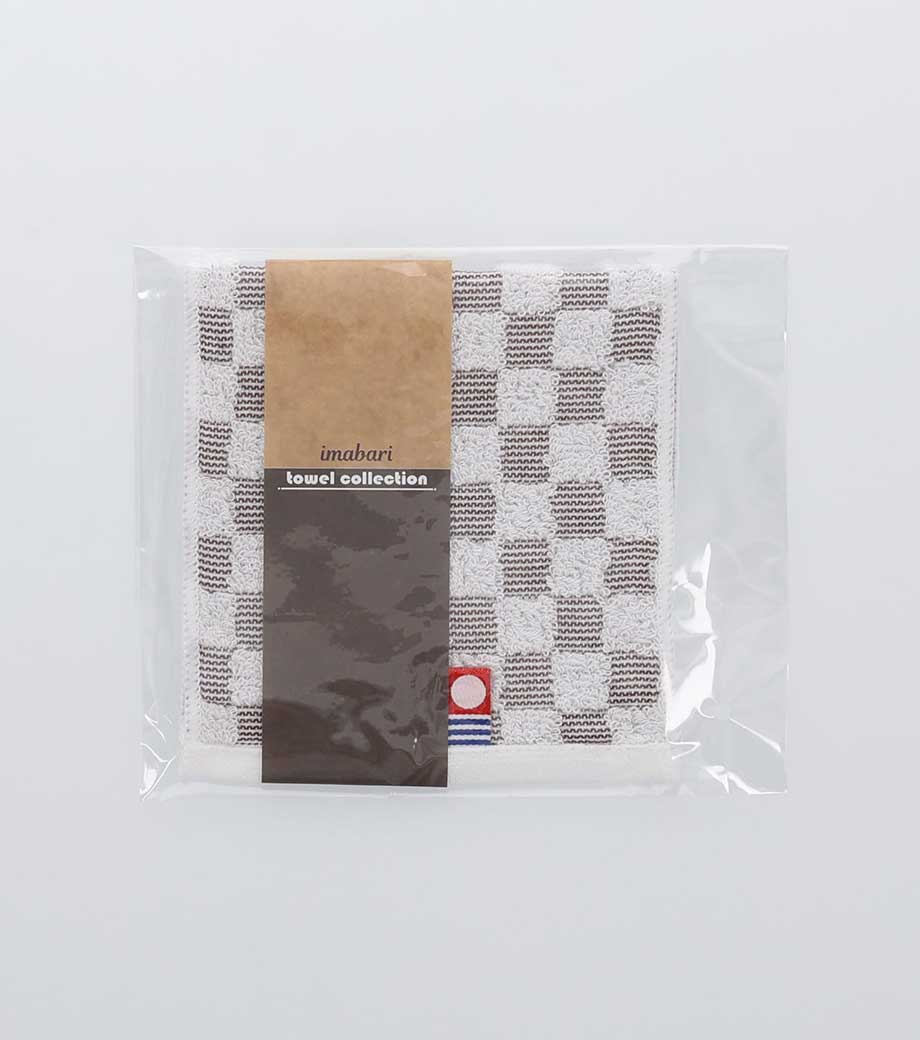 ポケットの中でコンパクトに収まる長方形のタオルハンカチです。スタイリッシュなフラッグチェックがおしゃれ。落ち着いた色味のブラウンとグレーの2色取混ぜでお届けします。高品質で実用的な今治タオルは、もらってうれしいノベルティとして人気。もちろん日本製なので、外国のお客様への記念品にもおすすめ。イベントの来場特典などで気軽にお配りできるサイズです。