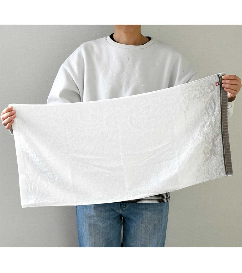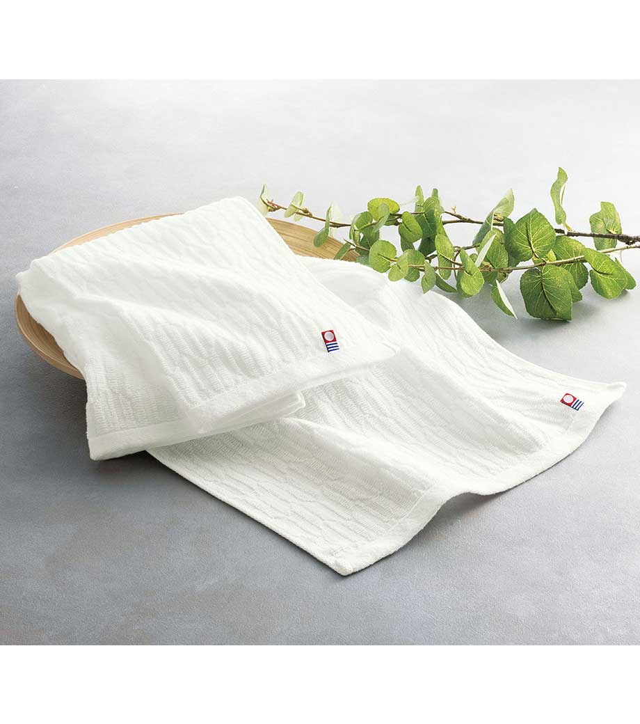矢絣柄のジャガード織の国産タオルです。真っ白で清潔感があり、柔らかなパイルのフェイスタオルで日常使いに最適です。