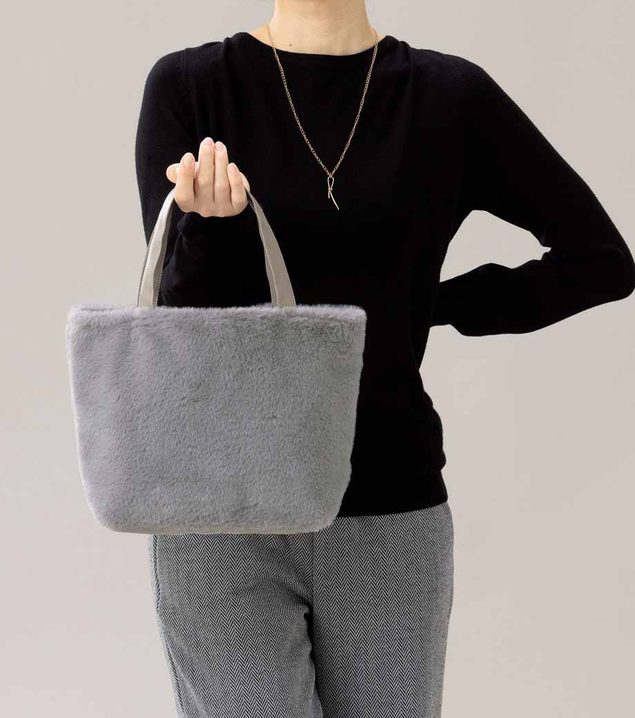 こなれ感を演出できるおしゃれなトートバッグです。あたたかみのある厚手のしっかりした生地なので、秋冬のお出かけバッグにぴったり!伸縮性のあるニット生地と横マチで、見た目以上に収納力があります。スマホやお財布など必要最低限の荷物はもちろん、ランチボックスや500mlペットボトルを入れるのにもちょうどいいサイズ感です。