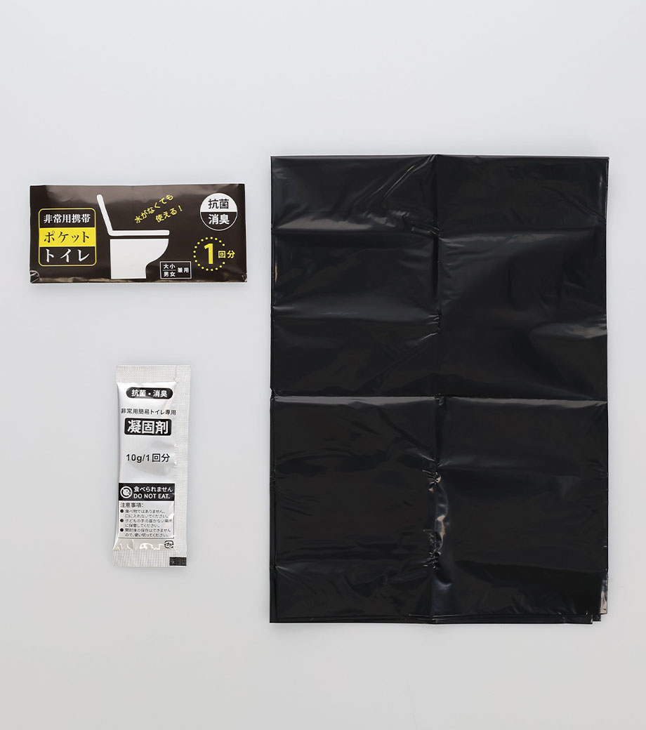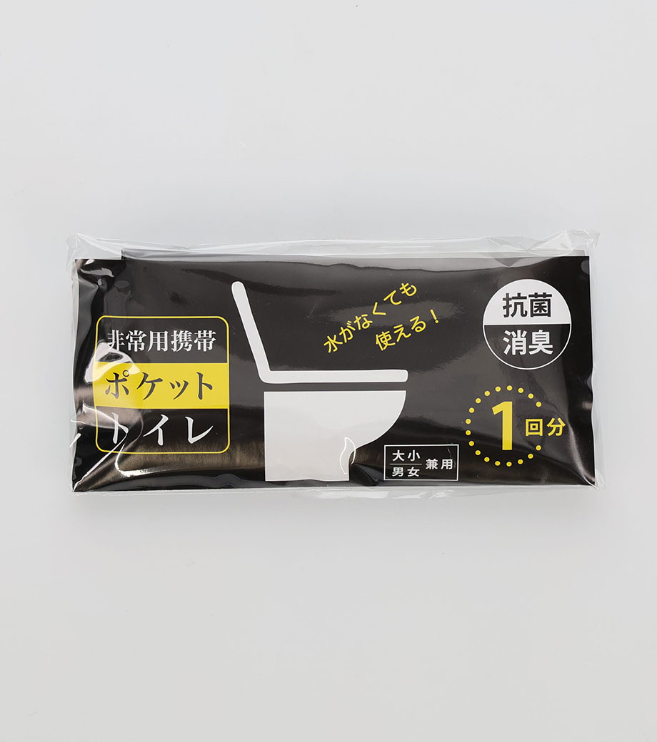 災害時や断水時などいざという時に備えておきたい非常用携帯ポケットトイレです。水が使えない状況でも手軽に使用でき、大小どちらにも対応する男女兼用タイプ。抗菌・消臭加工が施されているため、衛生面や気になるニオイにも配慮されています。