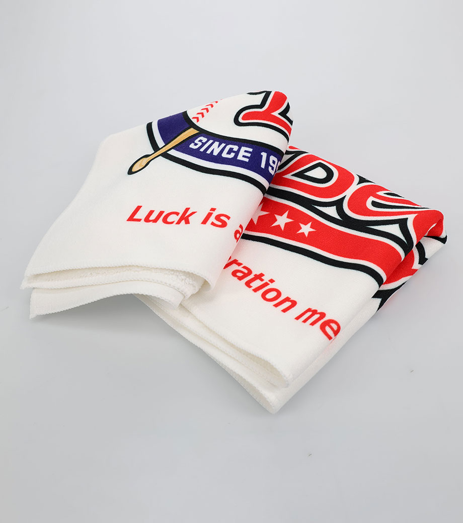 全面にフルカラープリントができる、しっかり生地のフェイスタオルです。写真やイラストなど細かなデザインまでしっかり表現できます。肩に掛けやすい定番サイズなので、スポーツ観戦やライブイベントで大活躍。アーティストのオリジナルグッズや卒団記念品などにぴったりです。