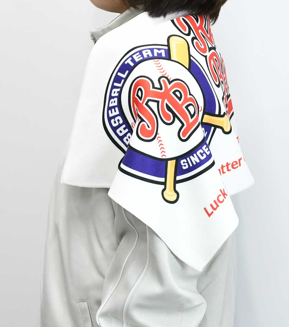 ワンポイントまたはぐるっと広範囲に1色印刷で名入れできます。スポーツショップの購入特典、クラブチームや部活の卒団記念品などにいかがでしょうか。