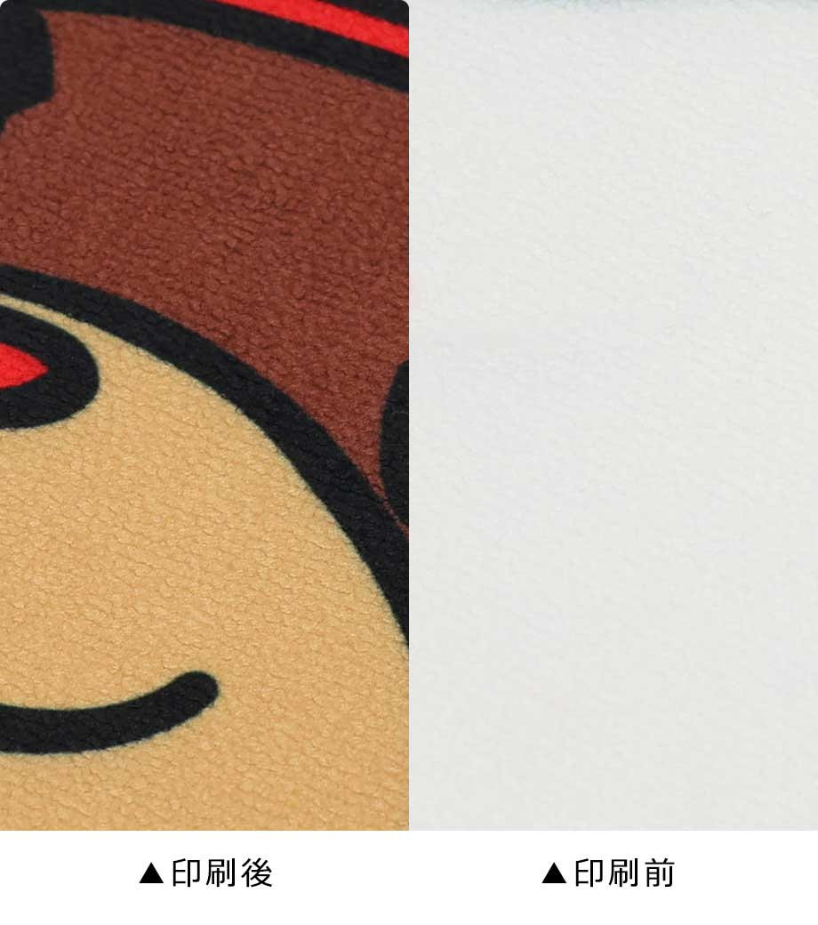 表面はなめらか、裏面はモコっとした手触りで、リッチな厚みが感じられます。肌寒い季節の応援グッズとしてもおすすめ。1枚から小ロットでご注文いただけます。