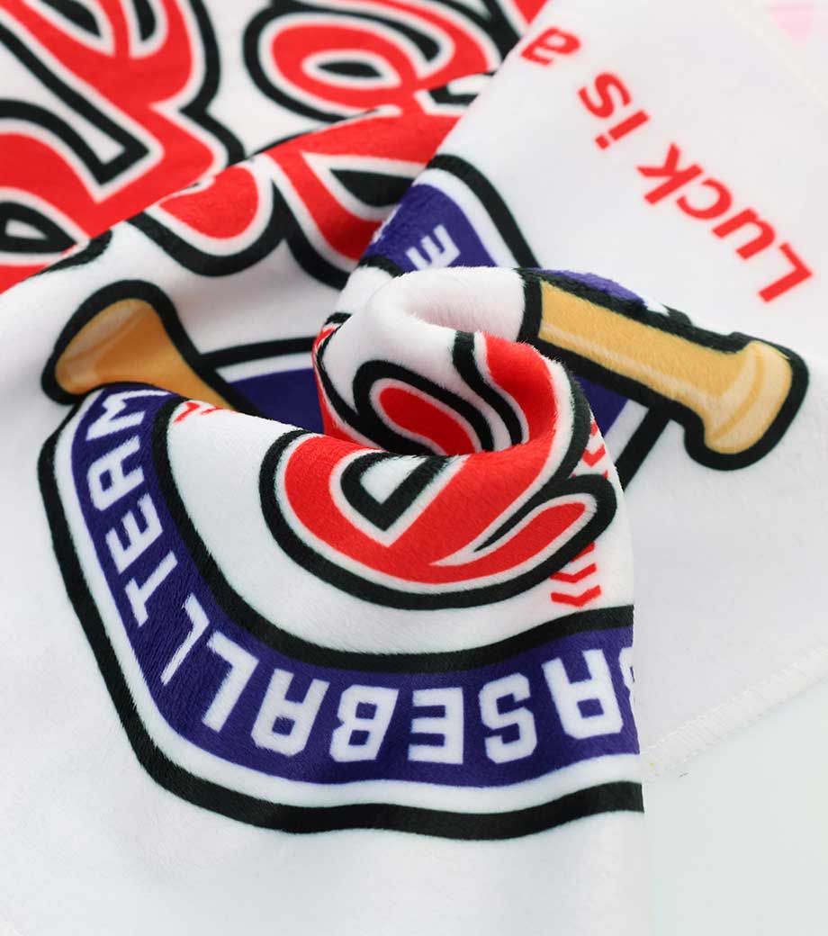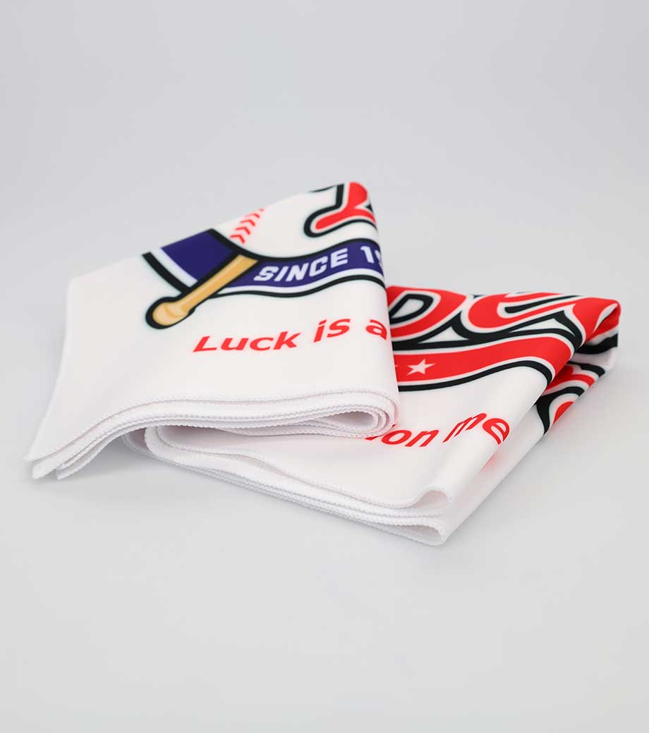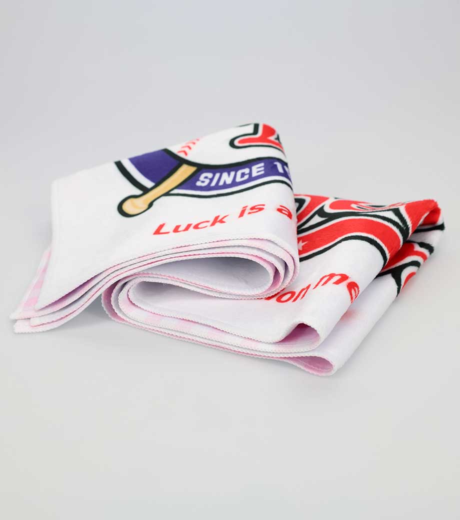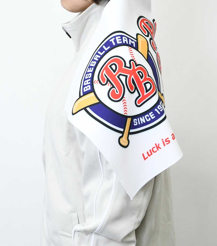 裏面は吸水性のあるパイル生地なので実用性も抜群!首に巻きやすいサイズ感で、スポーツ観戦やフェスなどのレジャーシーンで活躍します。クラブチームのロゴやオリジナルキャラクターなどを印刷した、オリジナルグッズ作成におすすめです。