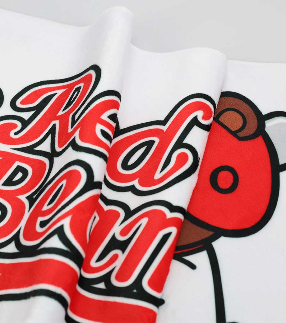 両面になめらかな感触のラビットタッチ生地を使用し、ほどよい厚みとしなやかさを兼ね備えています。1枚からの小ロットでオリジナルグッズ作成が可能です。
