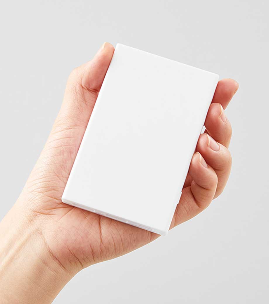 約5000mAhの容量と最大20Wの急速充電に対応した、実力派のモバイルチャージャーです。持ち運びに便利なコンパクト設計に加え、付属のType-Cケーブルがそのまま「ストラップ」になる画期的なデザインを採用。残量表示パネルでバッテリーの状態も一目で把握できます。単色・フルカラー印刷が可能。キャラクターやロゴを大胆にレイアウトできるため、アーティストグッズやプレミアムなノベルティにいかがですか。