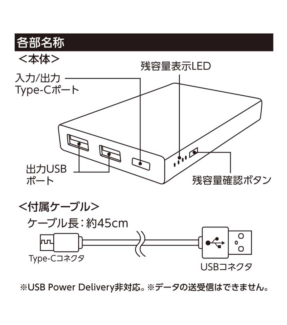 PD急速充電コードストラップ付モバイルチャージャー5000/PSEマーク付