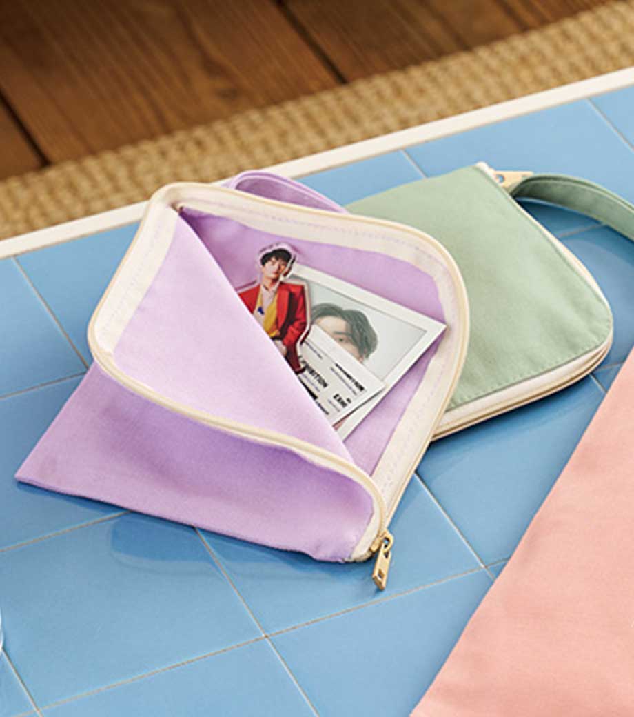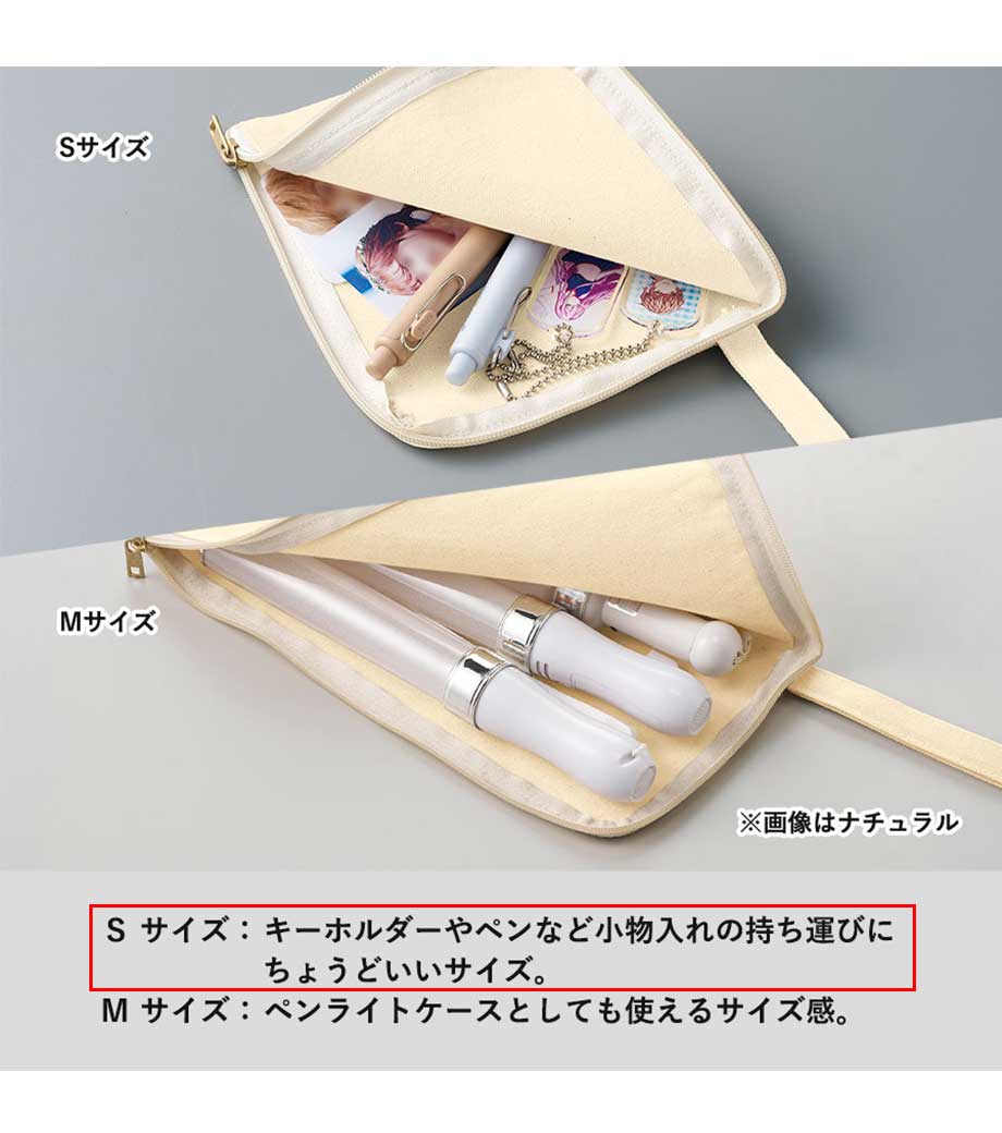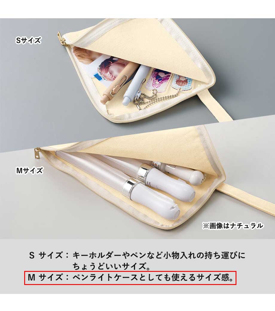 ペンライトや大きめのアクリルグッズもすっきり収まる、推し活にぴったりのフラットポーチです。マチなしのスリム形状でバッグの中でかさばりにくく、イベントやライブにも気軽に持っていけます。開けやすいL字ファスナー仕様で、中身の出し入れがスムーズです。