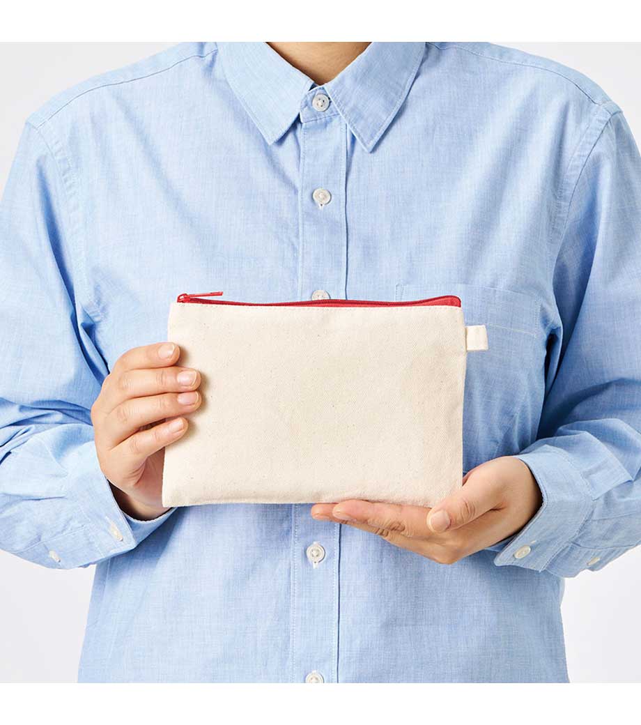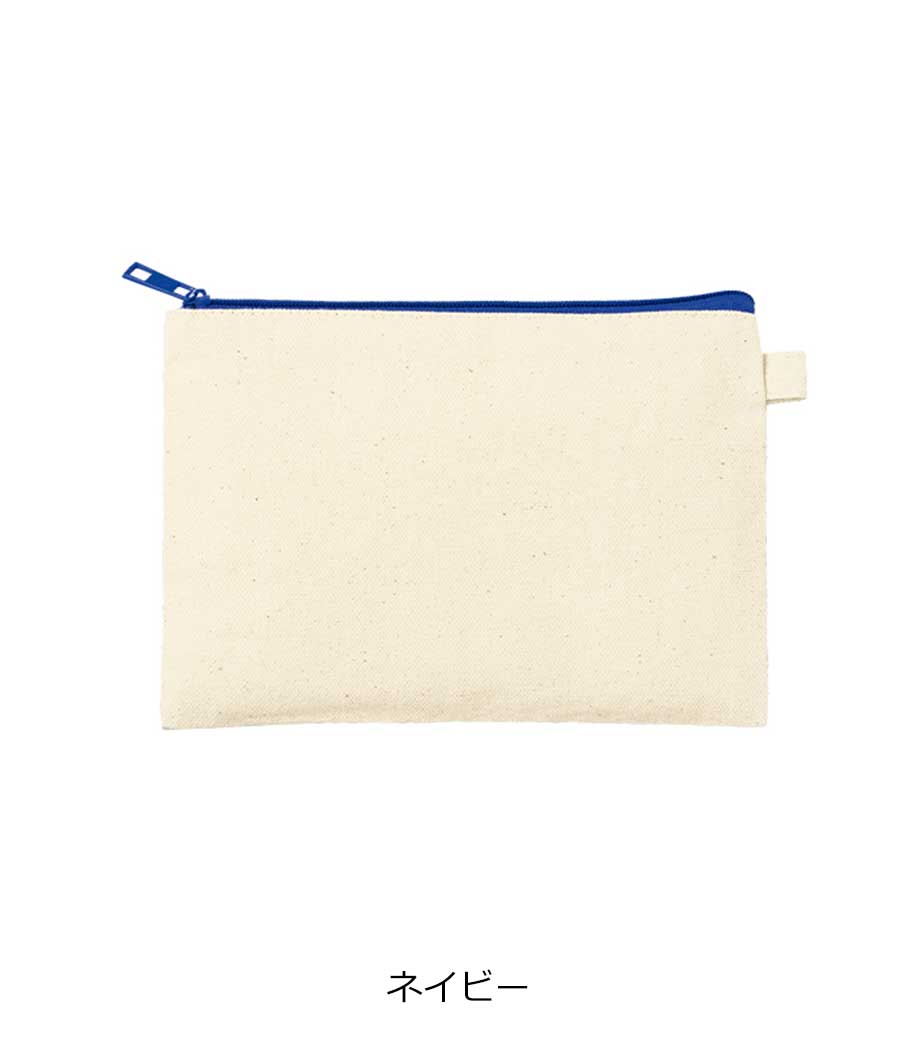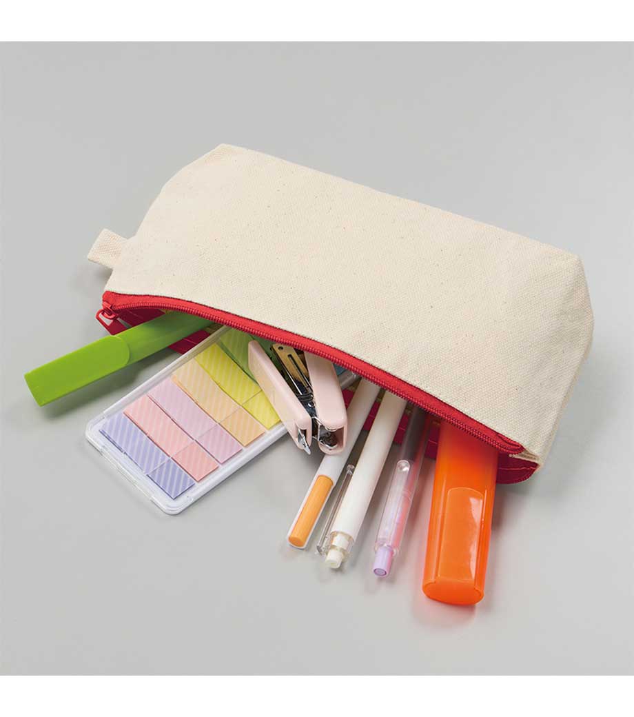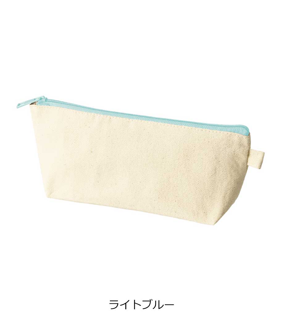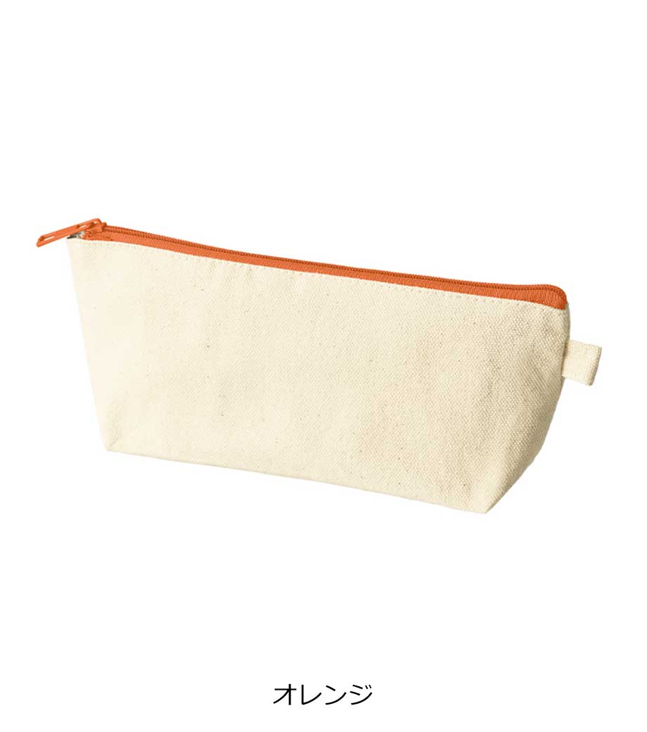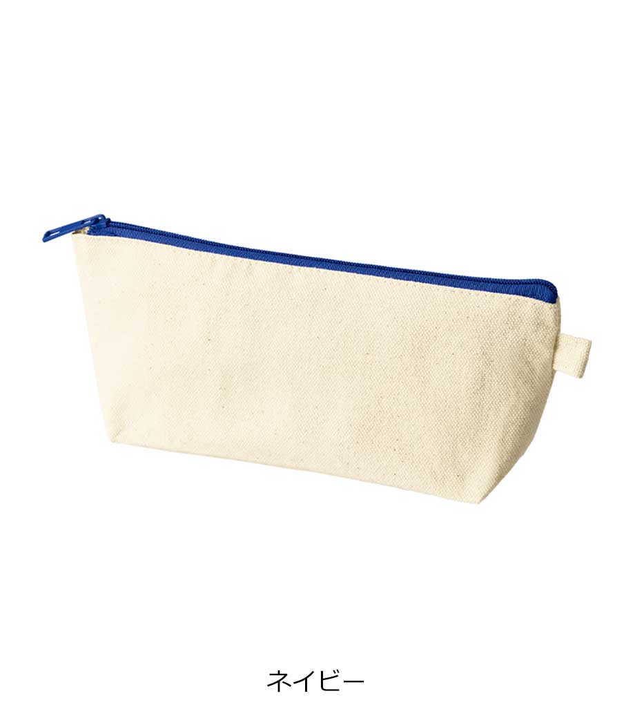 ファスナーの差し色がアクセントになったキャンバスポーチです。マチ付きでしっかり自立する舟形デザインで、コスメや小物をたっぷり収納できる使い勝手の良さが魅力です。サイドループ付きでキーホルダーやチャームも付けられ、アレンジを楽しめます。