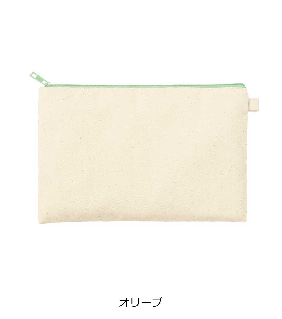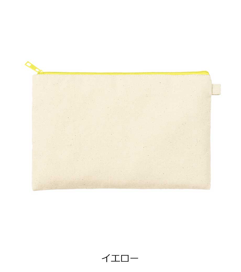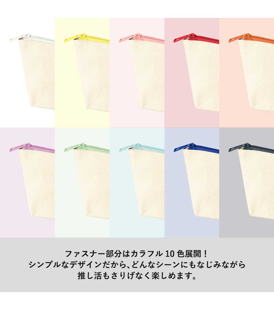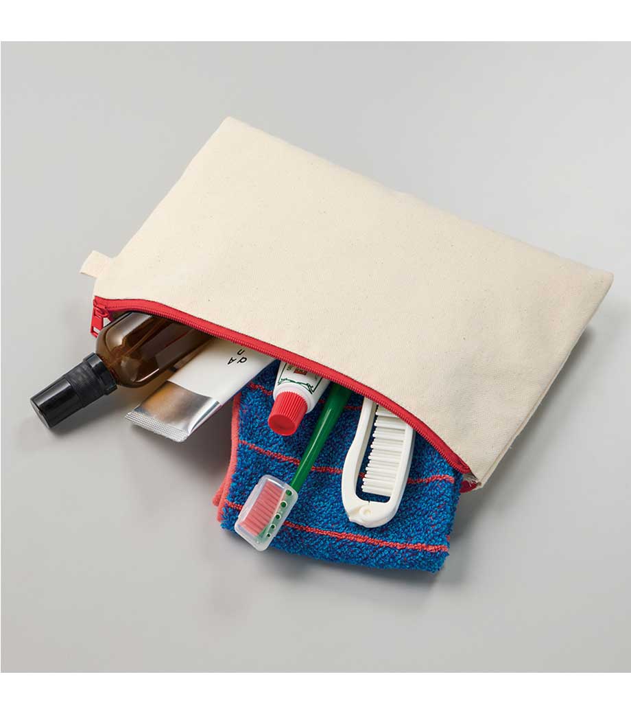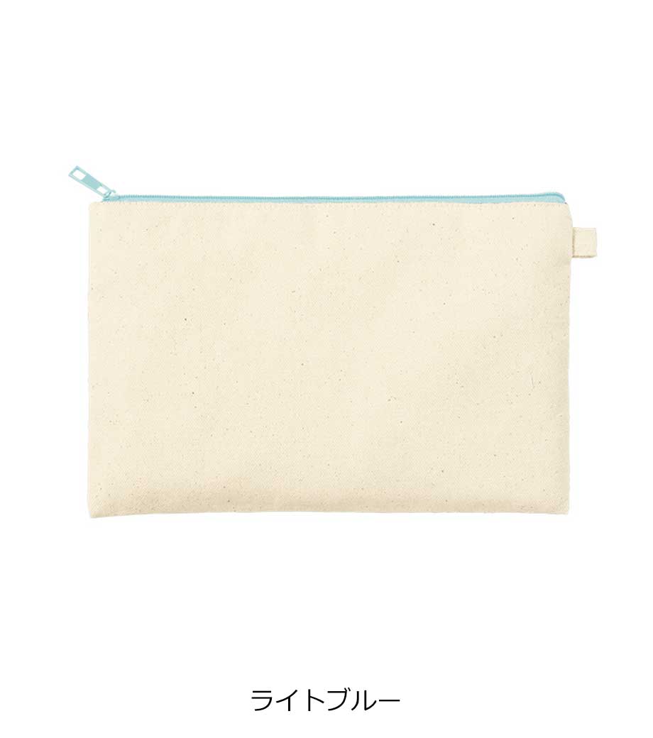 ファスナーの差し色がアクセントになったキャンバスポーチです。マチ付きでしっかり自立する舟形デザインで、コスメや小物をたっぷり収納できる使い勝手の良さが魅力です。サイドループ付きでキーホルダーやチャームも付けられ、アレンジを楽しめます。