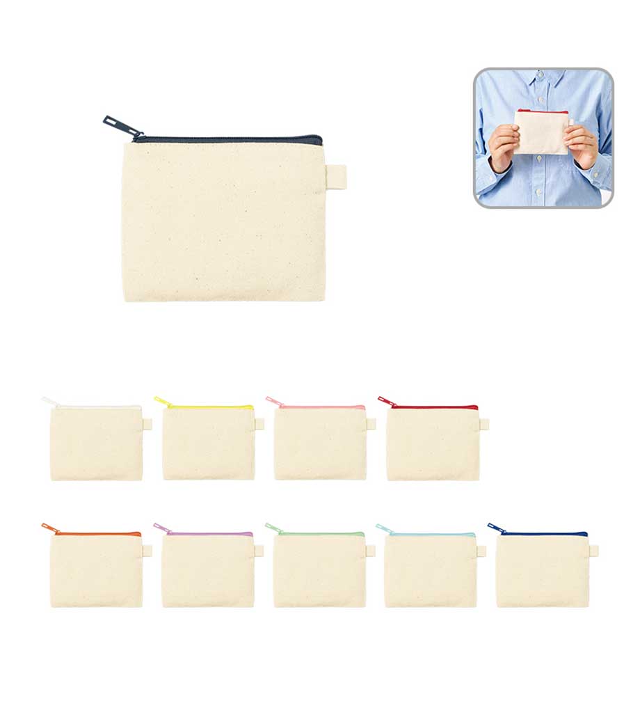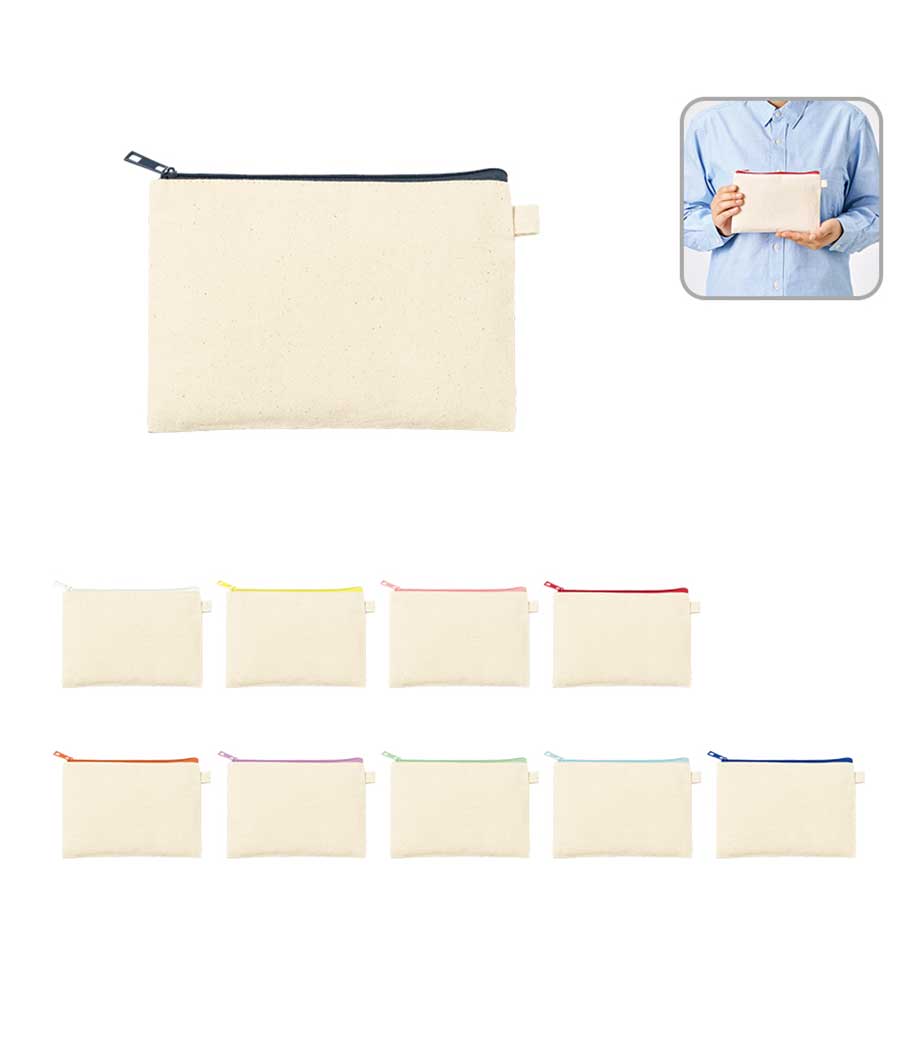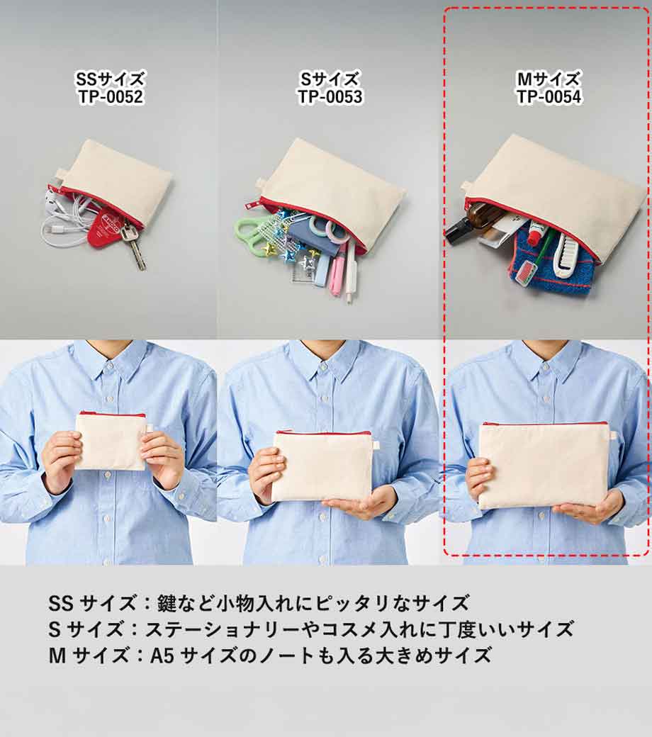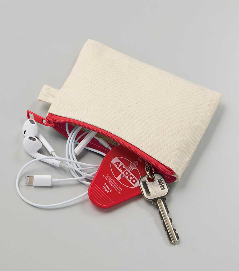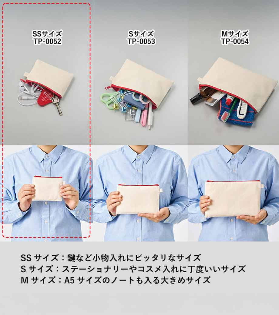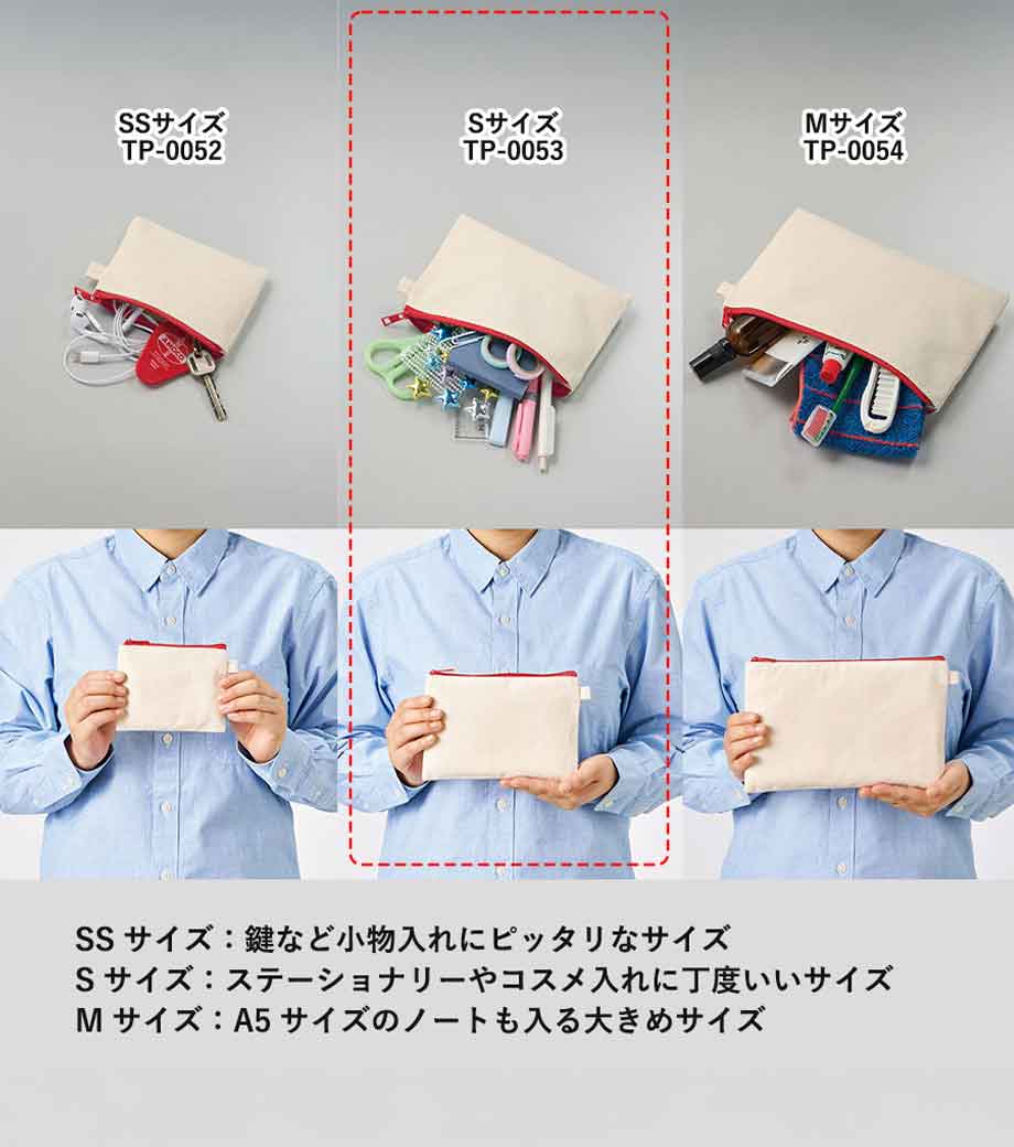 ファスナーの差し色がアクセントになったキャンバスポーチです。マチ付きでしっかり自立する舟形デザインで、コスメや小物をたっぷり収納できる使い勝手の良さが魅力です。サイドループ付きでキーホルダーやチャームも付けられ、アレンジを楽しめます。