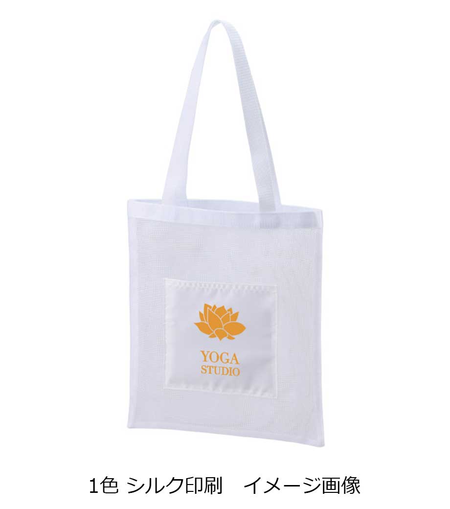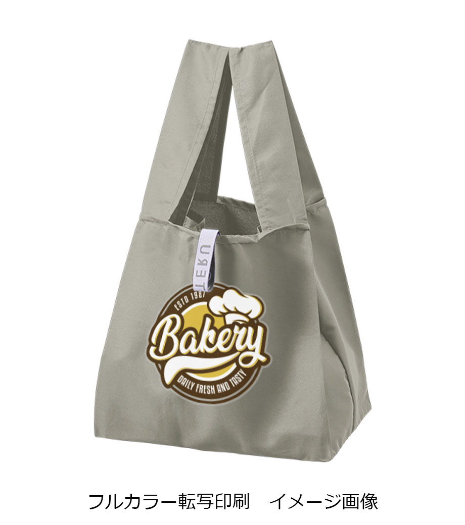 外側ポケット部分に、1色でロゴやショップ名を印刷できます。食料品店のオリジナルグッズやデリのキャンペーンノベルティとして大人気です。