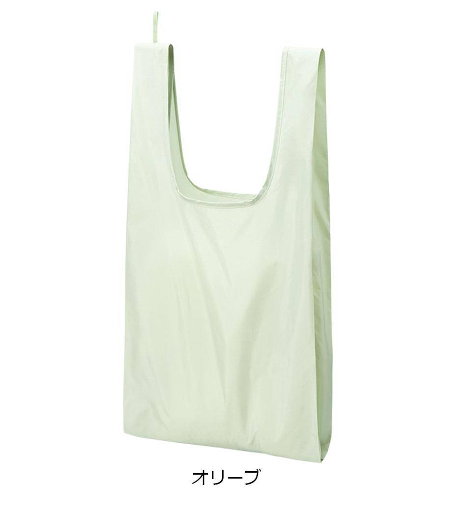 環境に優しい再生PET生地使用のマチ付きエコバッグ。軽量で丈夫な素材で、ちょっとしたお買い物に程よいサイズです。ゴムバンド付きなのでコンパクトにたためて収納に便利。通勤時のバッグに入れておけば、急なお買い物に対応できます。繰り返し使えてサステナブル。レジ袋削減にもなりエコに貢献できます。自然をイメージできる緑色も印象的。