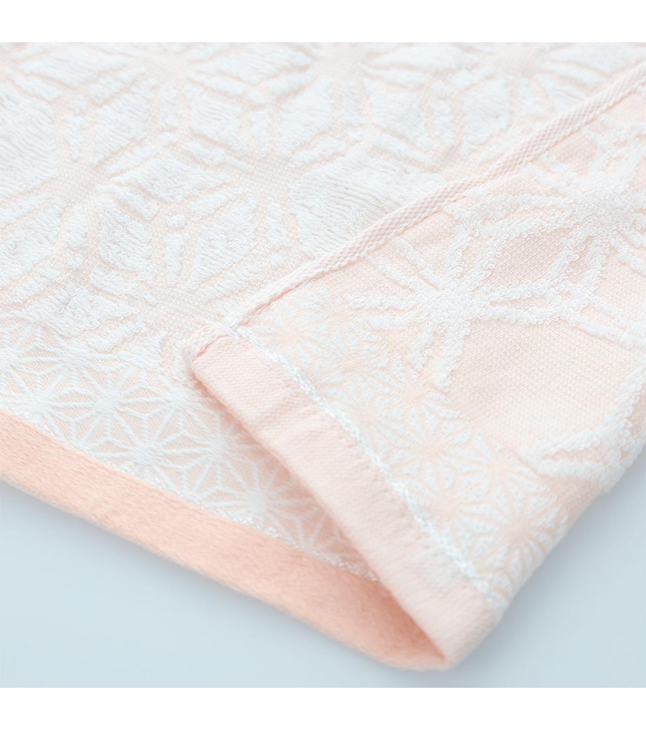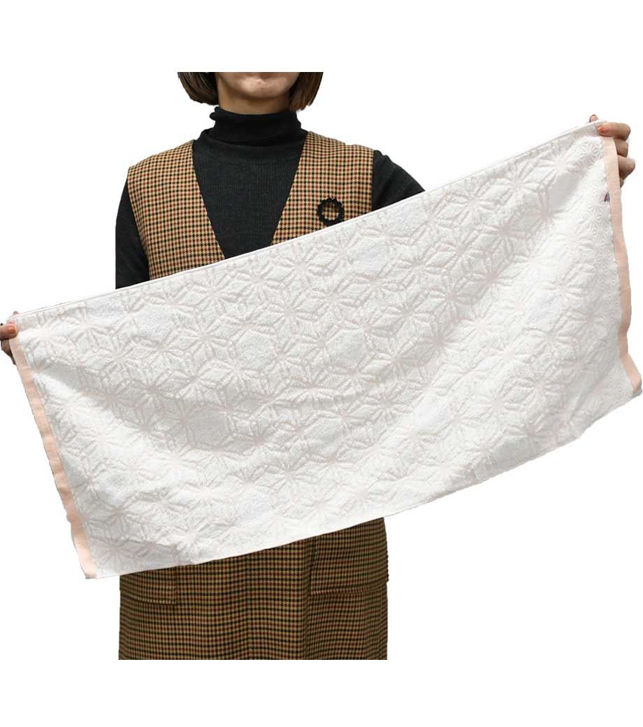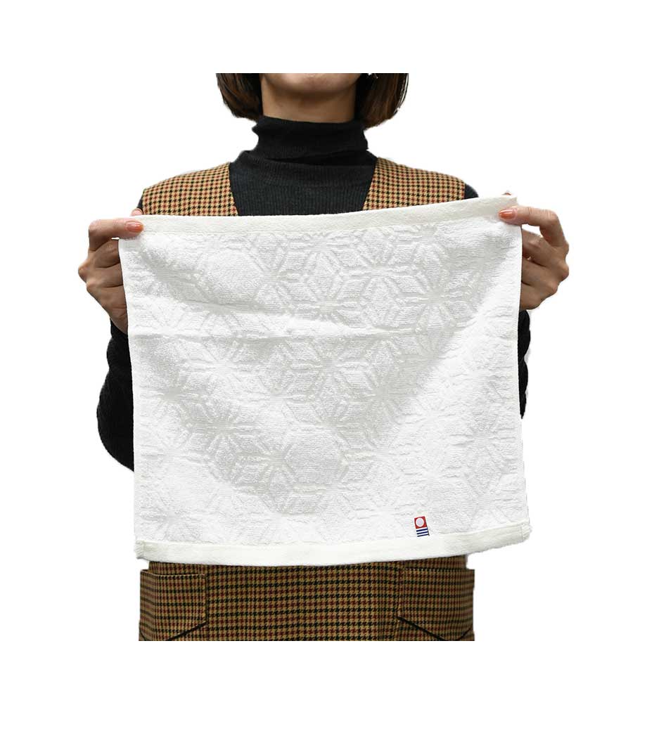 四国・愛媛県の名産今治タオルの確かな品質を感じられる一枚です。日本の伝統文様である麻の葉柄で、魔除けや成長を願う意味を持つため贈り物にも最適。