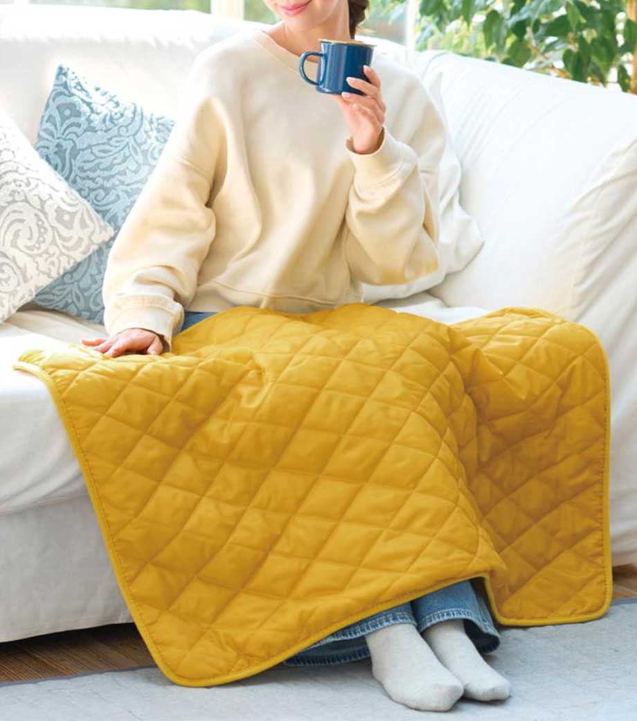 リボンで包まれたプレゼント風パッケージが目を引くウォームブランケットです。