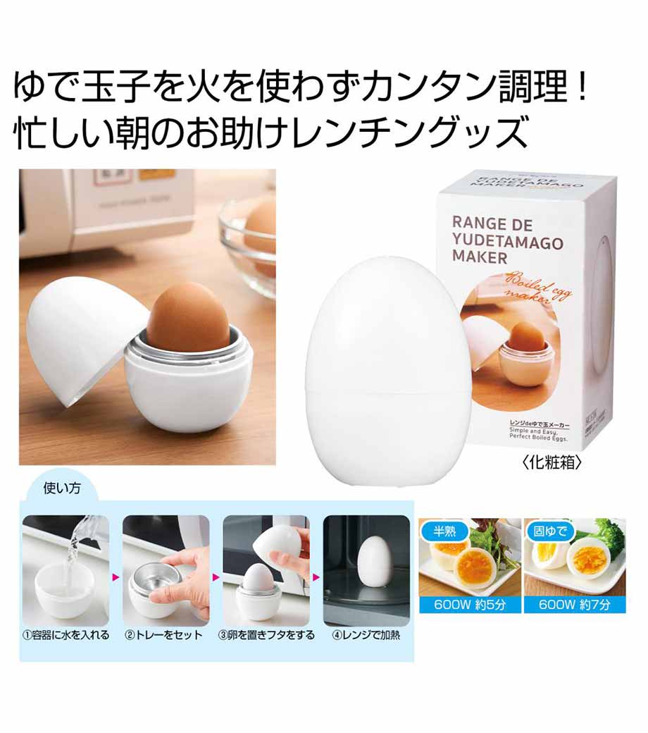 忙しい朝でも手軽に電子レンジでゆでたまごが作れるゆで玉メーカー。容器に水を入れてフタをするだけで火を使わず安全に調理できます。電子レンジ600Wで約5分なら半熟、約7分ならしっかり固ゆでに仕上がる手軽さが魅力。一人暮らしの方や調理時間を短縮したい時にぴったりのアイテムです。