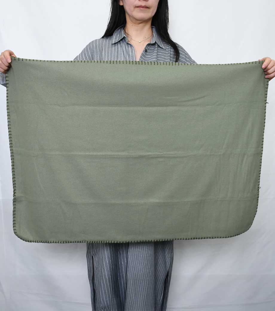 イエロー・グレー・グリーンの3色取混ぜでどれも落ち着いた色合いが魅力。端には本体色と同じステッチが施され、手頃な価格ながらも上質さを感じられる仕上がりです。