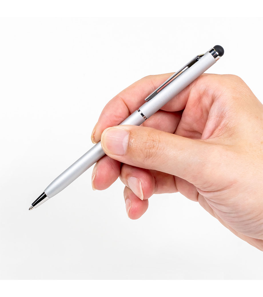タッチペンとボールペンの機能を兼ね備えた、スリムでコスパ抜群の筆記具です。手帳や胸ポケットにすっきり収まるデザインと、高級感のあるルックスで、ビジネスシーンに最適。商談や会議の際にスマートに取り出せます。デジタルデバイス操作から書類への筆記まで、1本で対応できる実用性が魅力的。