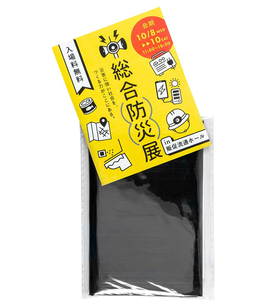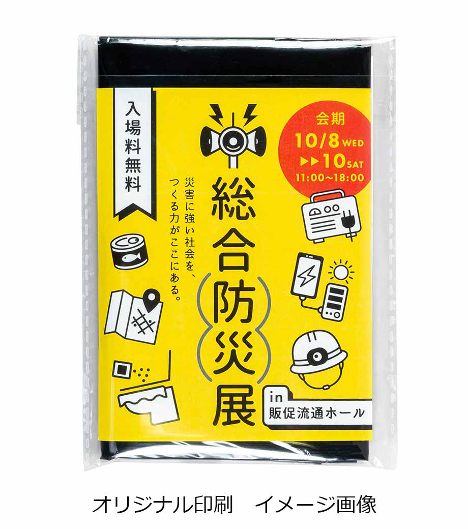 側面には企業ロゴや自治体名を1色印刷で名入れ可能です。地域イベントの参加者に防災ノベルティとして配布したり、車や住宅関連の成約記念品としてプレゼントするのにいかがでしょうか。