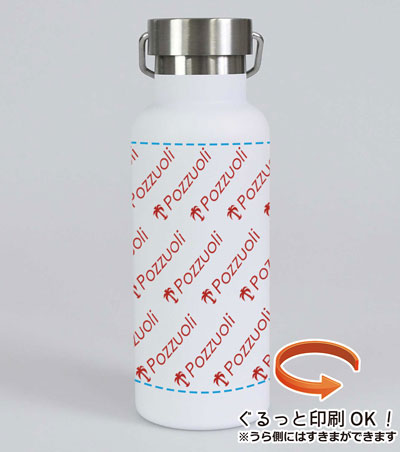 持ち運びに便利なハンドル付きステンレスサーモボトル。容量約520mlでアウトドアやスポーツ、レジャーに最適。人気のカーキ・ネイビーを含むカラー展開で、企業イメージやブランドに合わせたグッズ制作におすすめです。