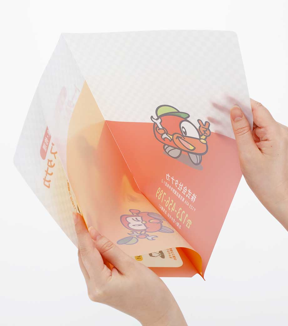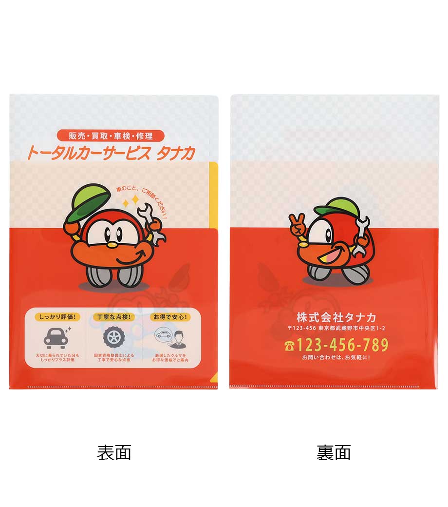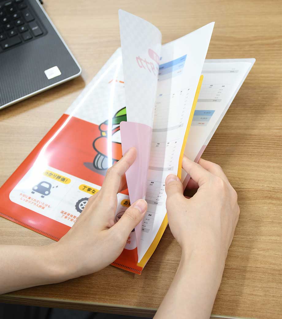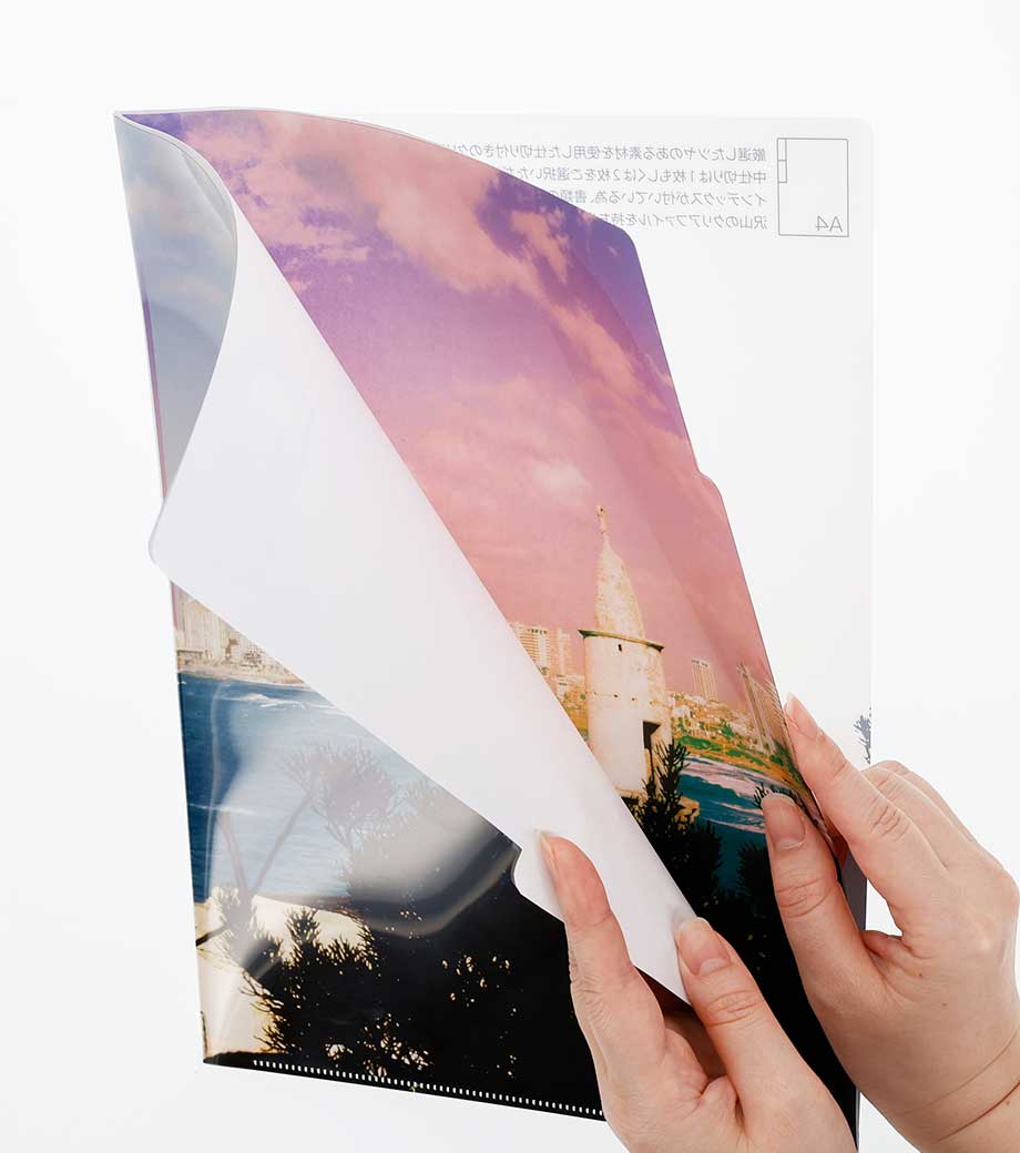 オモテとウラの全面にフルカラー印刷が可能なクリアファイル。細かなデータや写真がきれいに表現できるので、デザインにこだわったオリジナルのノベルティを作成していただけます。