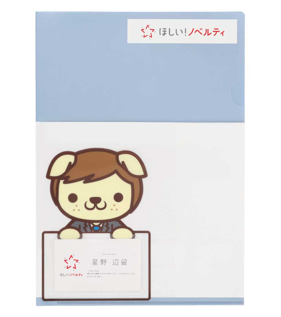 クリアファイルの透明度はそのままに、高精細なフルカラー印刷で写真やイラストも美しく再現。10枚からの小ロット注文に対応しています。日常的に使いやすい実用的なアイテムなので、展示会やオープンキャンパスなどにおすすめの激安ノベルティです。