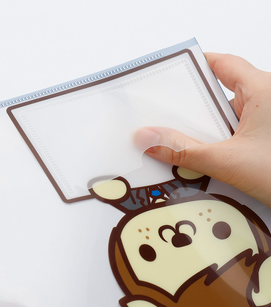 クリアファイル素材なので、薄くて軽く携帯に便利です。お食事などマスクをちょっと外す際の保管や、予備のマスクの携帯用にお使いいただけます。チケットや振込用紙の携帯にも活用できます。中身の落下を防ぐ簡易的なフラップ付きです。