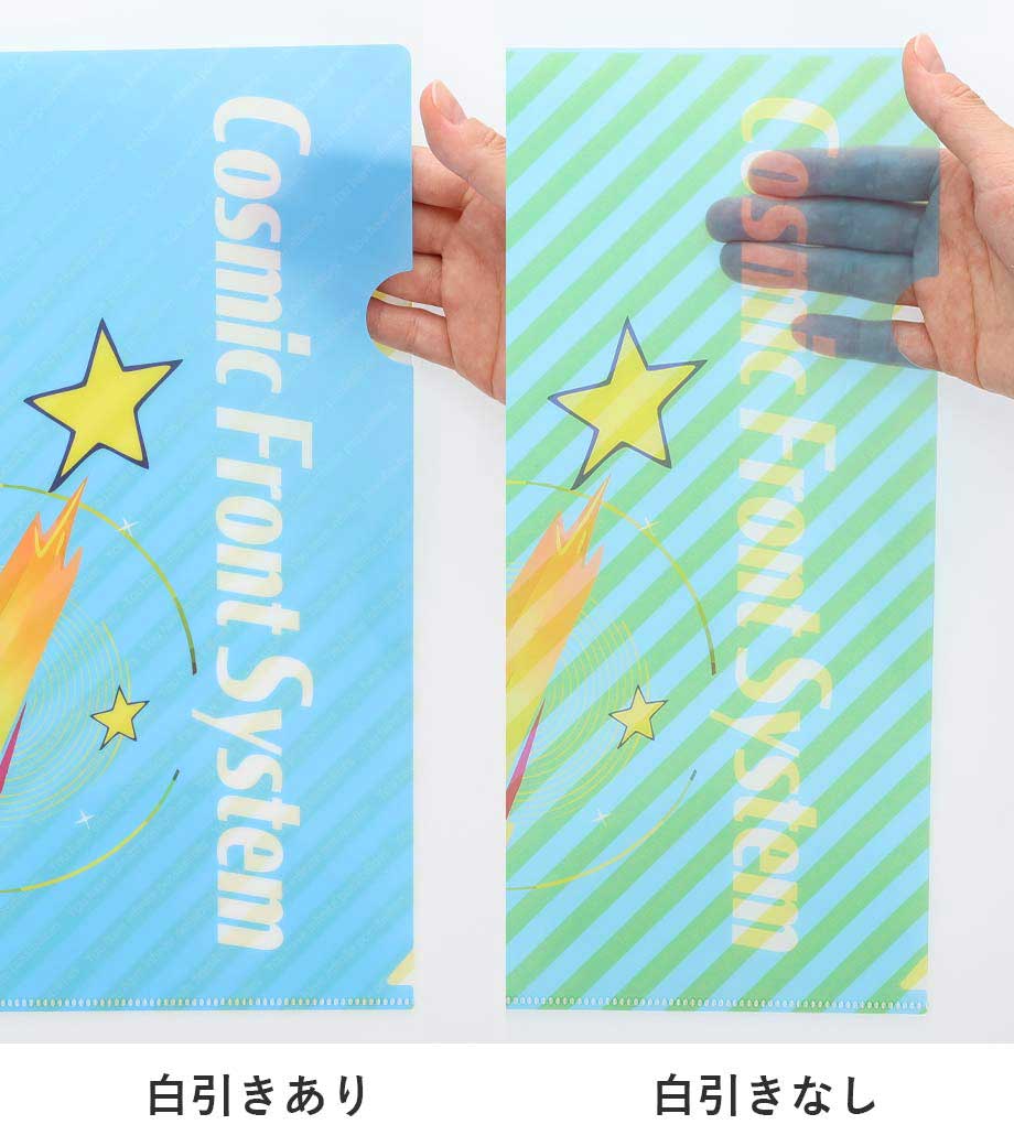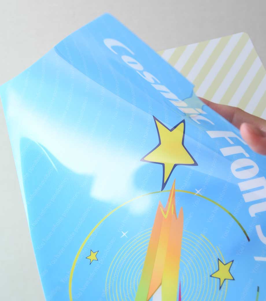 キラキラと美しく輝く箔押し印刷対応のクリアファイル。半透明で中が透けて見えるので、内容物の確認に手間取りません。