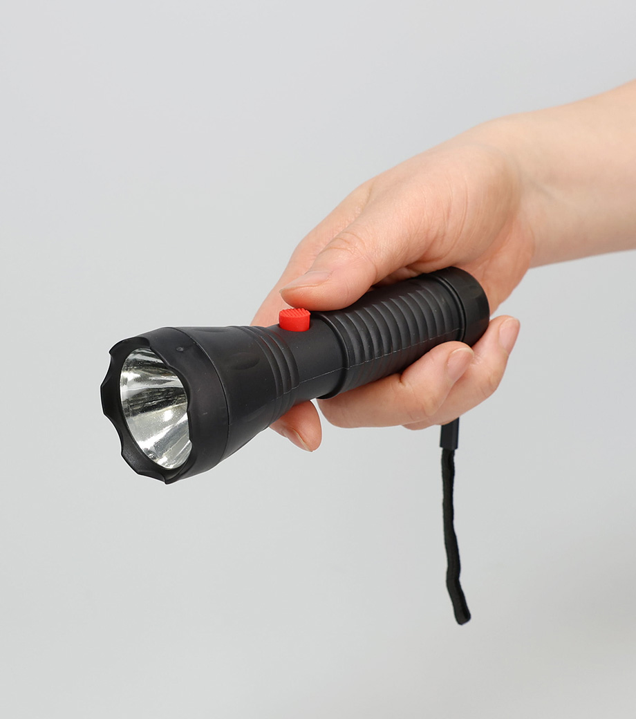 手にしっくりなじむラバー調グリップが特徴のコンパクトライト。軽量設計・ストラップ付きで持ち運びに便利です。COB式の高輝度ライトが広範囲をしっかり照らし、暗所での作業や非常時にも安心。乾電池式なので、停電時や災害時の備えとしてもおすすめです。防災グッズとしてはもちろん、日常使いにも活躍する頼れるライトです。