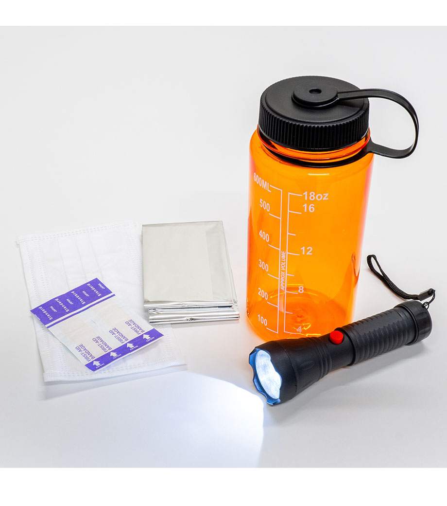 目盛り付きボトルに入った防災セット