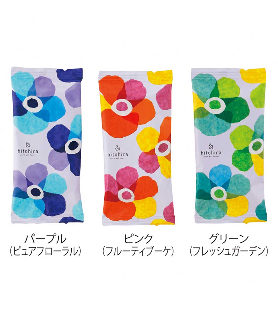 フラップ(開閉部分)に1色でオリジナル印刷可能なウェットティッシュ。袋に耐光性・防湿性の高いアルミ蒸着の3層構造フィルムを採用しており、5年長期保存に対応しています。防災備蓄品としてはもちろん、非常持ち出し袋に1つあると安心のアイテムです。約20×30センチの大判のシートが10枚入り。日本製なのもうれしいポイントです。