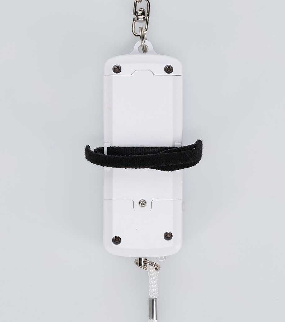ホイッスルライトの上部裏にあるスイッチを押すたびに、「強く点灯」→「弱く点灯」→「点滅」と光が変化。明るさを嫌う犯罪者からも未然に避けることができます。