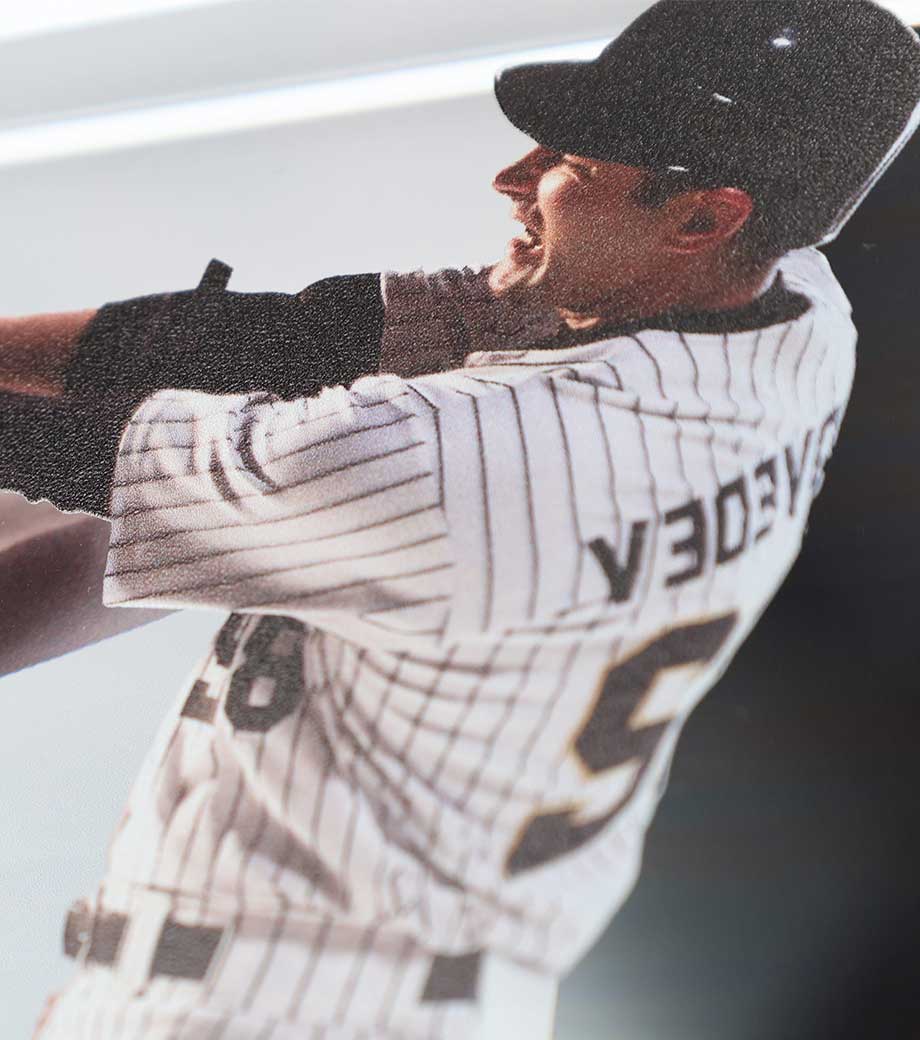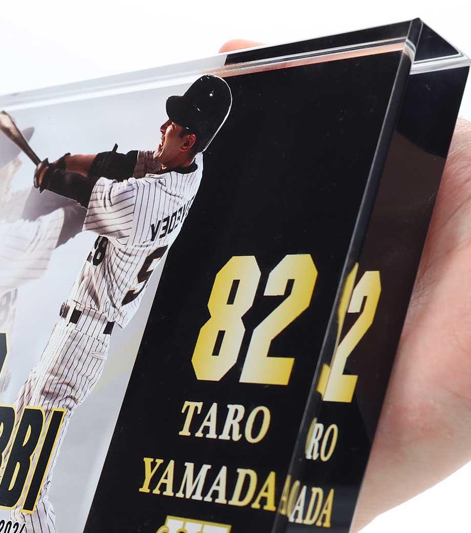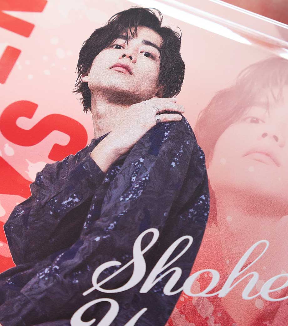 アーティストやキャラクターを印刷すれば、推しをいつでも眺められるファングッズに。高級感があるので、会社のロゴを入れた周年記念品や竣工記念品にもおすすめです。