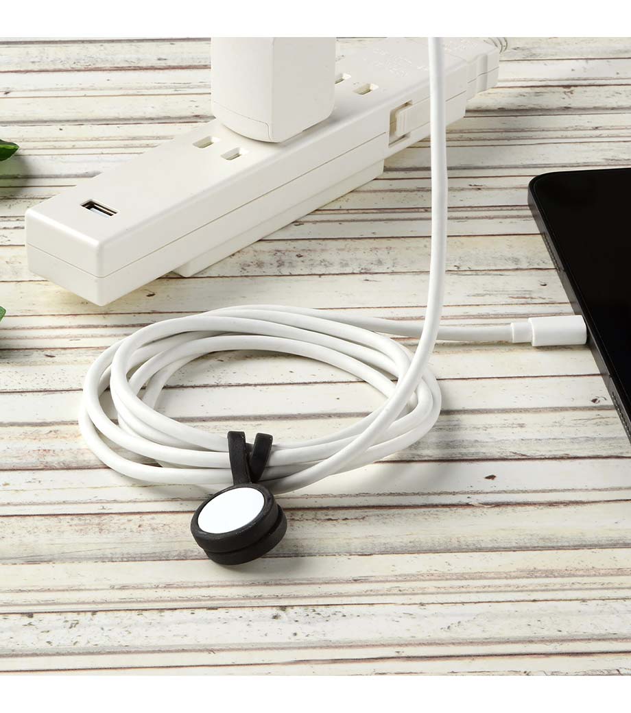 マグネット式でパチッと簡単に着脱できるケーブルバンド。スマートフォンやPCの充電ケーブル、ヘッドホンコード、家電コードなど、様々なケーブルがすっきりまとめられます。繰り返し使えるのでエコで便利。