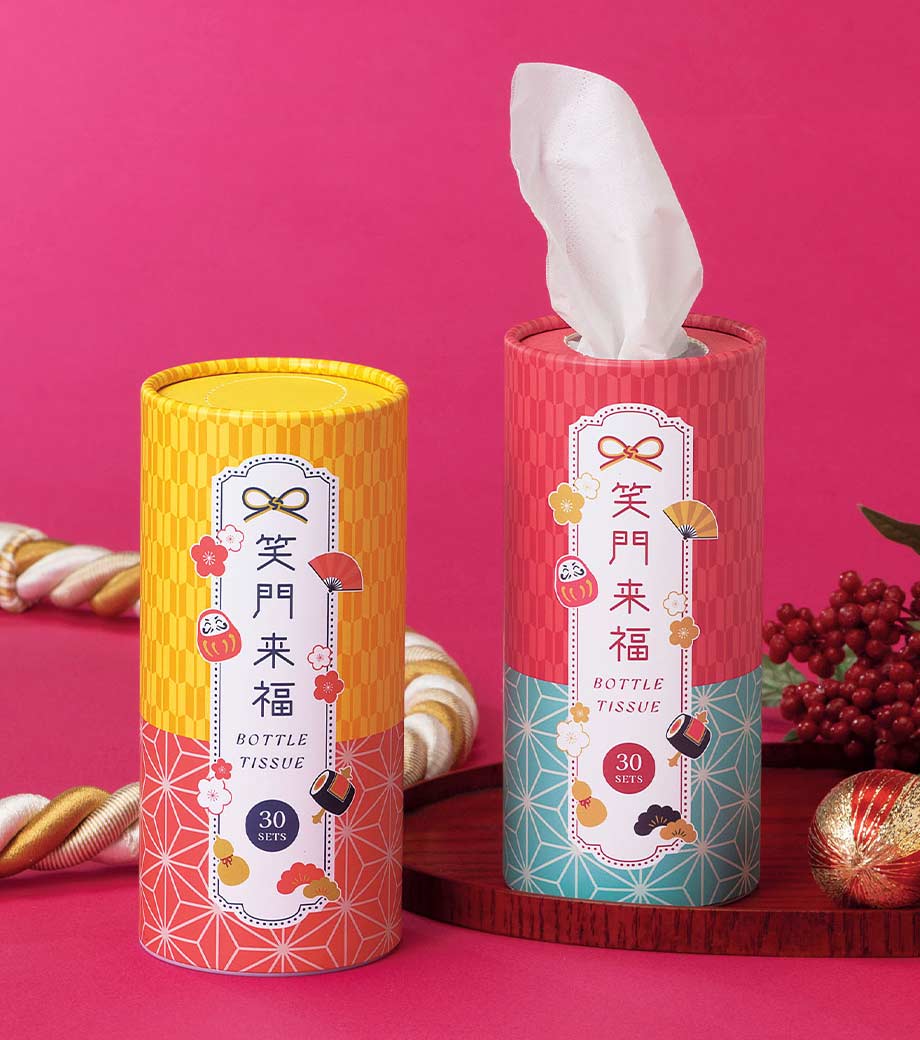 スリムでコンパクトなボトルタイプのティッシュペーパー。車のカップホルダーに収まるサイズです。オフィスのデスクなど限られたスペースでもかさばらないのがうれしい。使い切ったら市販のボックスティッシュの中身を入れることも可能です。(枚数・サイズは要調整)