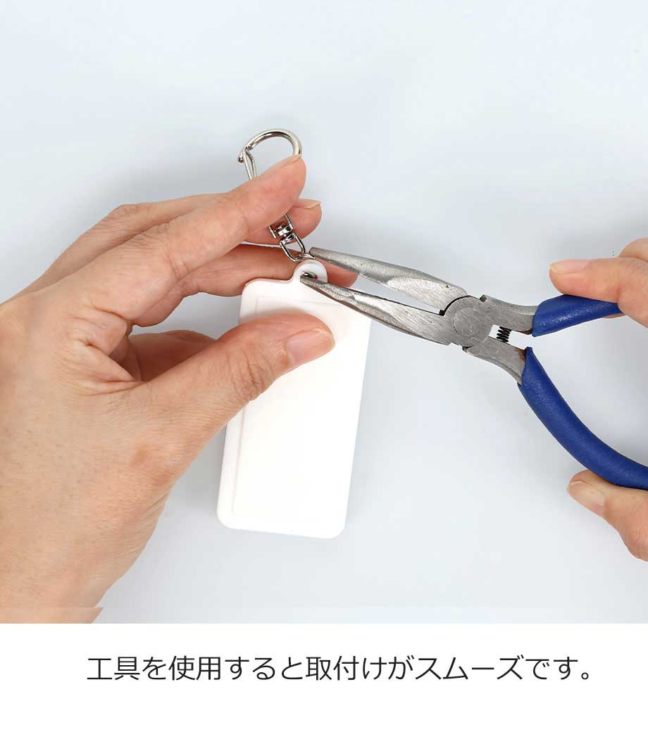 名入れは1色印刷が可能。高級感の出るレーザー印刷がおすすめです。カバンなどに付けて持ち歩いてもらえるので、宣伝効果もバッチリ!ポストインができるので、郵送でのノベルティにもおすすめです。