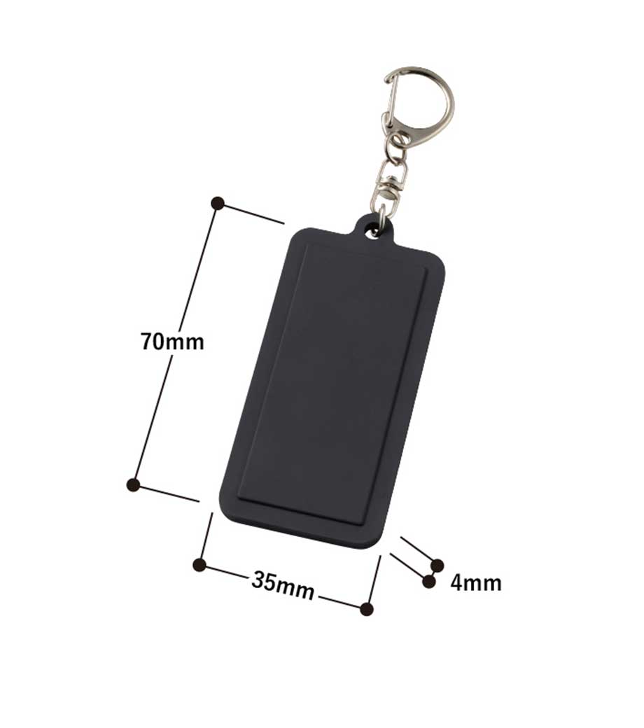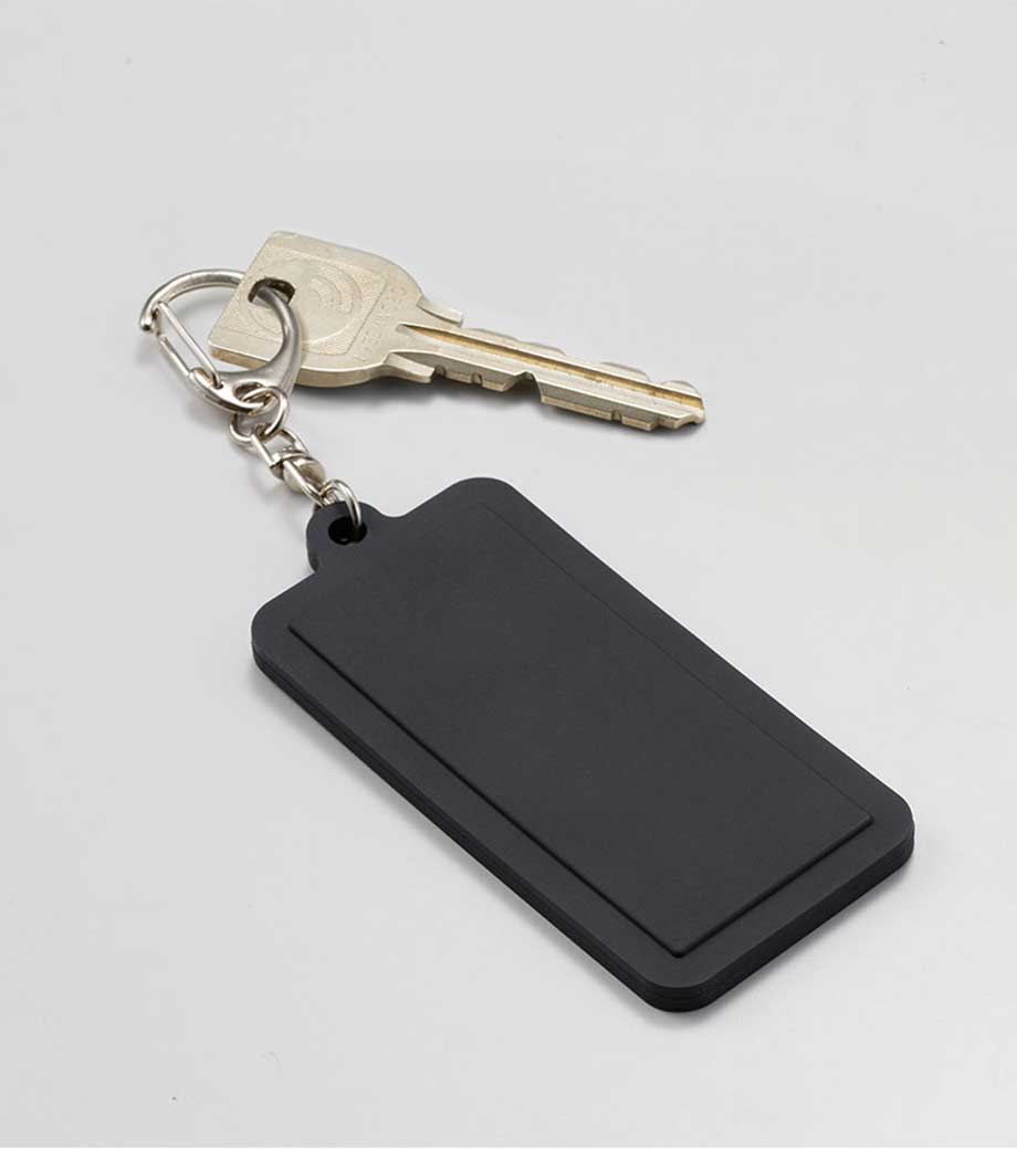 ラバー素材でやわらかく、傷がつきにくいラウンド型のキーホルダーです。