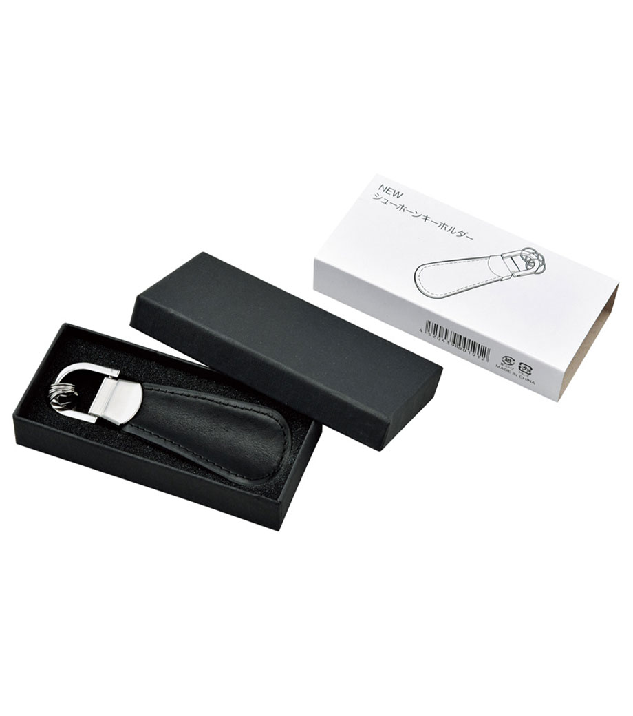 金具部分に1色印刷かレーザー彫刻が可能。オリジナルキーホルダー(靴べら)が作れます。フォーマルな箱入り仕様のため、周年記念品や竣工記念品など格式ある配布シーンに最適です。