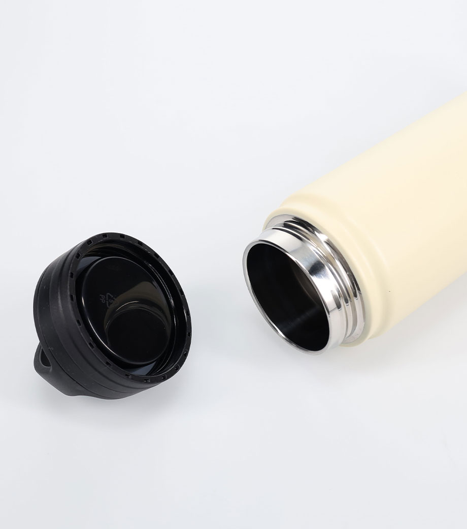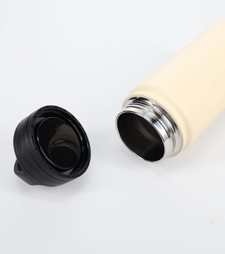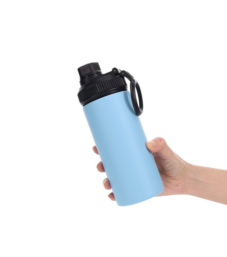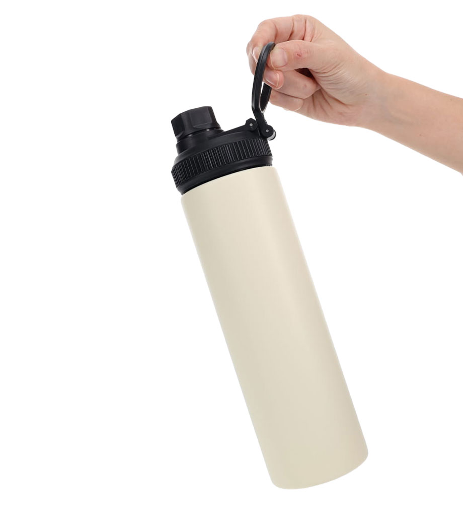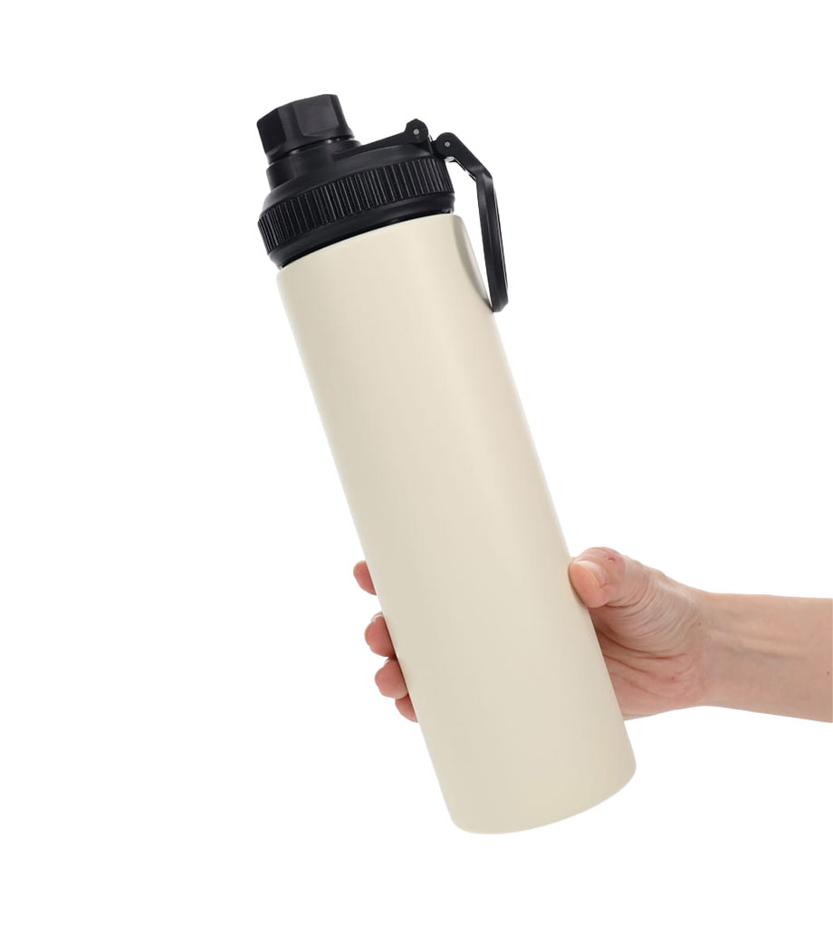 たっぷり飲める容量約650mlのステンレスボトルです。真空二重構造で飲み頃温度を長時間キープ。内側にセラミック加工が施され、汚れや水滴が残りにくくなっています。丸ごと食洗機にかけられてお手入れ簡単!スポーツ飲料OKなので、アクティブなシーンにもぴったりです。