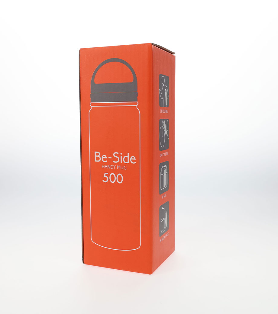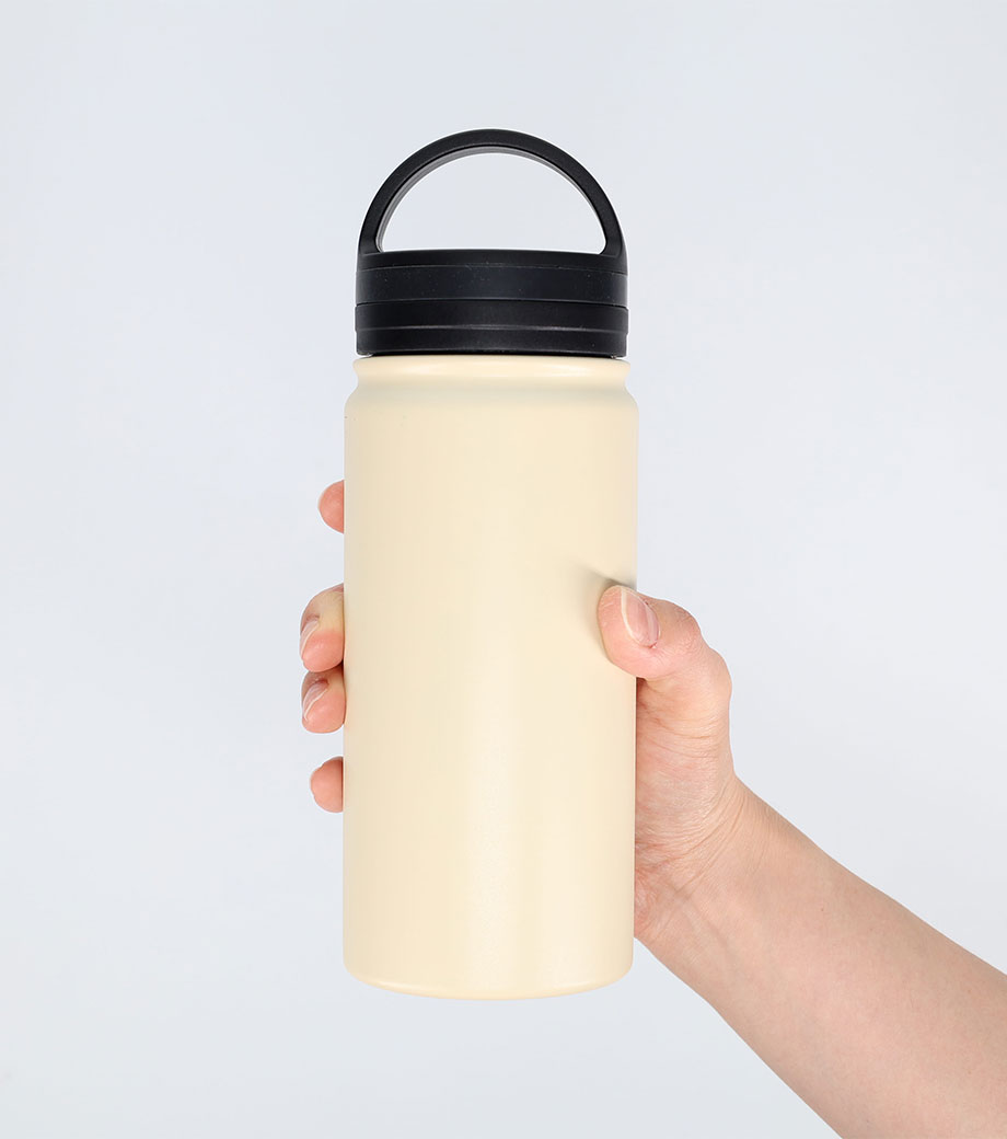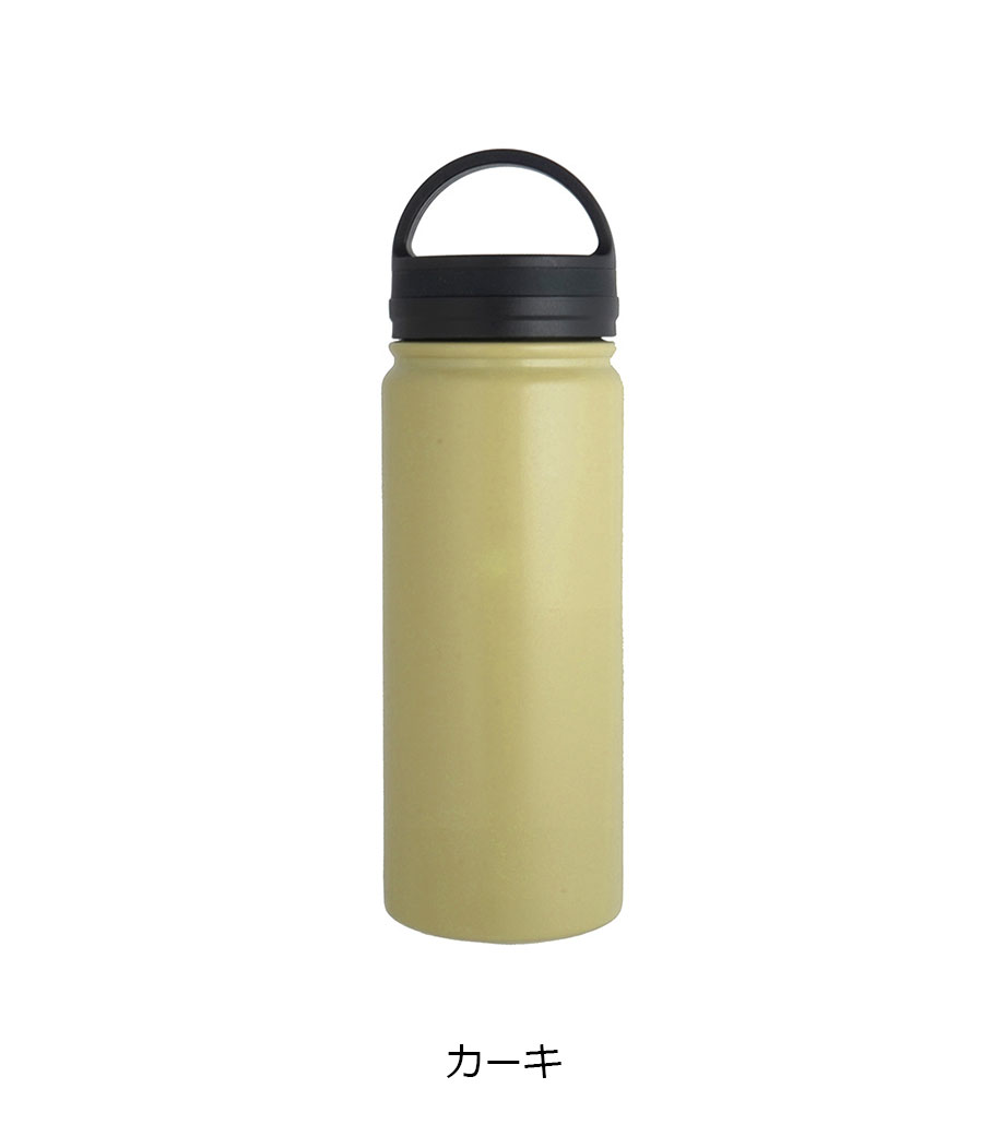 トレンド感あるマット塗装の真空二重構造ボトルです。表面をパウダーコーティング。滑りにくく、濡れた手でもしっかり持つことができます。折りたためるハンドル付きなので、携帯にも便利。たっぷり飲める容量約500mlです。シックな色合いでデザイン性と機能性を併せ持つ人気商品です。